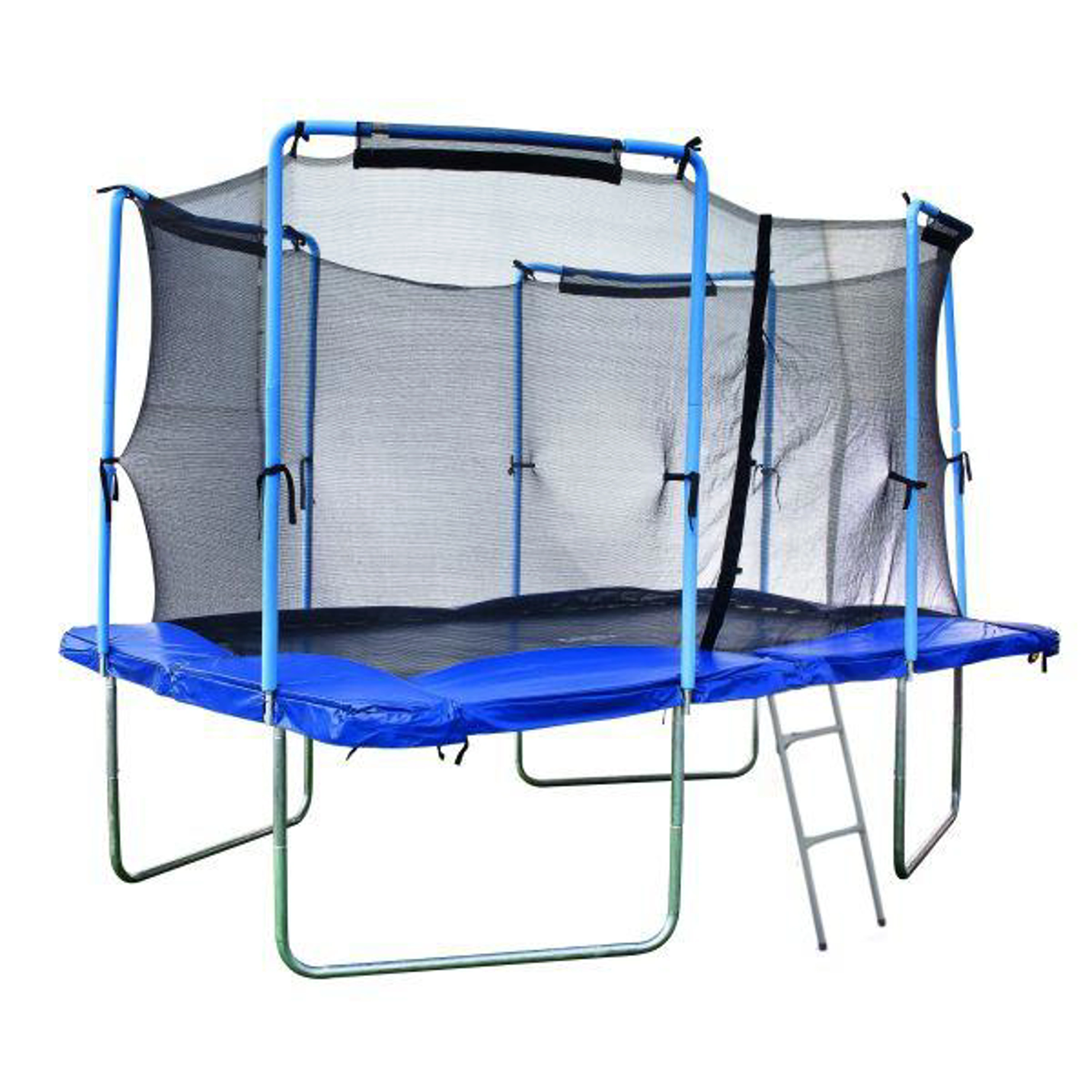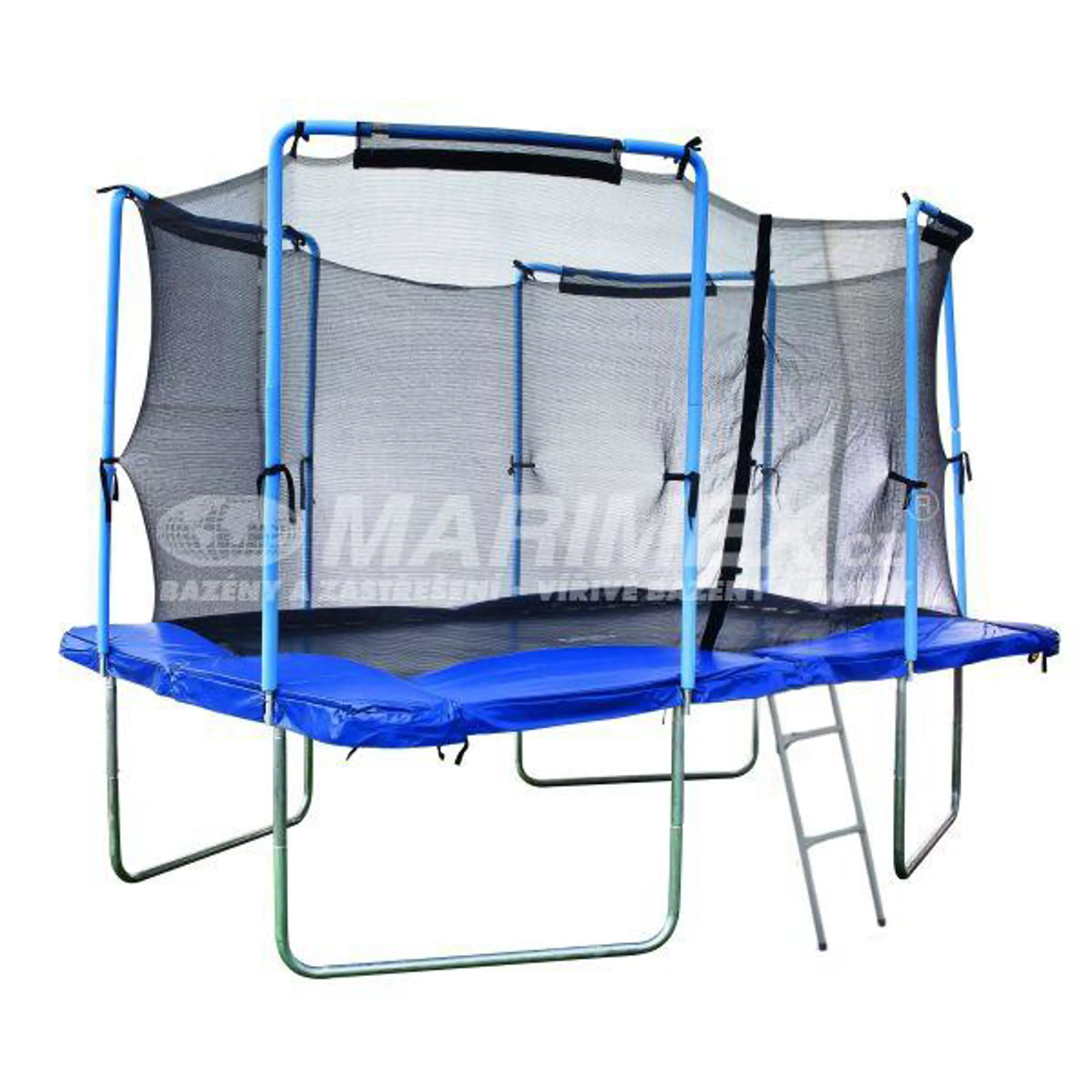 Vnější ochranná síť, jejíž tyče jsou spojeny s tyčemi nohou trampolíny, zajistí ještě více prostoru. Tato trampolína má navíc v balení kovový žebřík pro snadnější přístup na skákací plochu.
