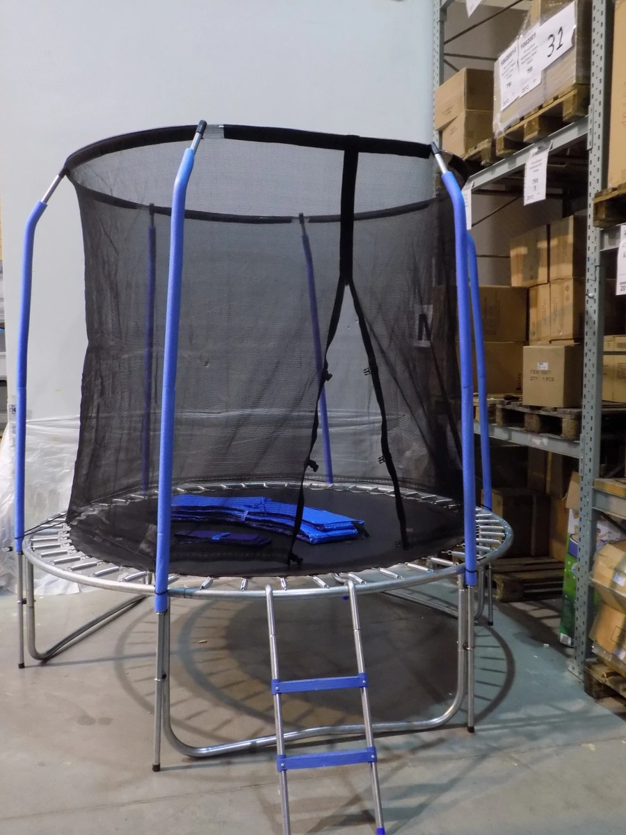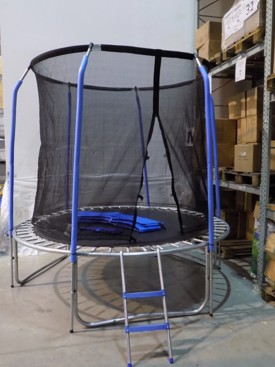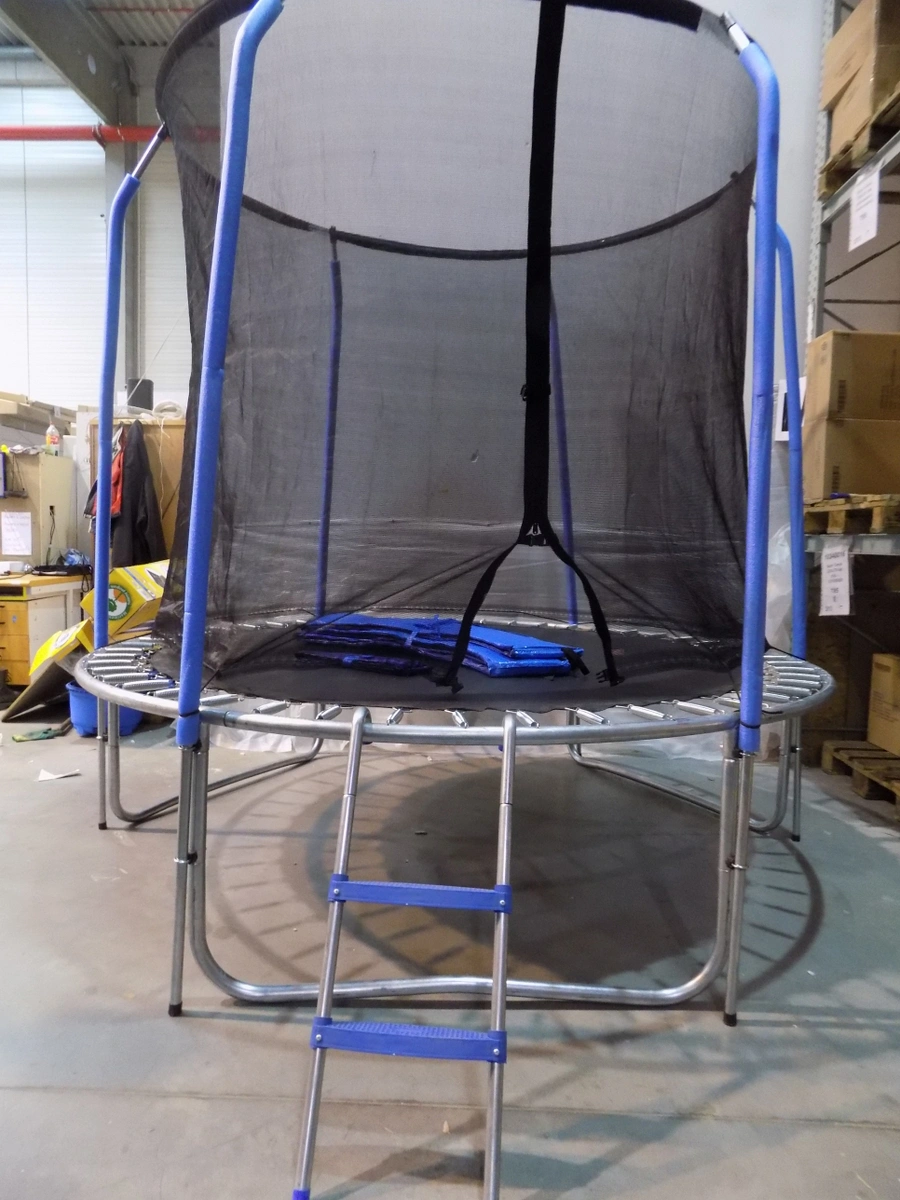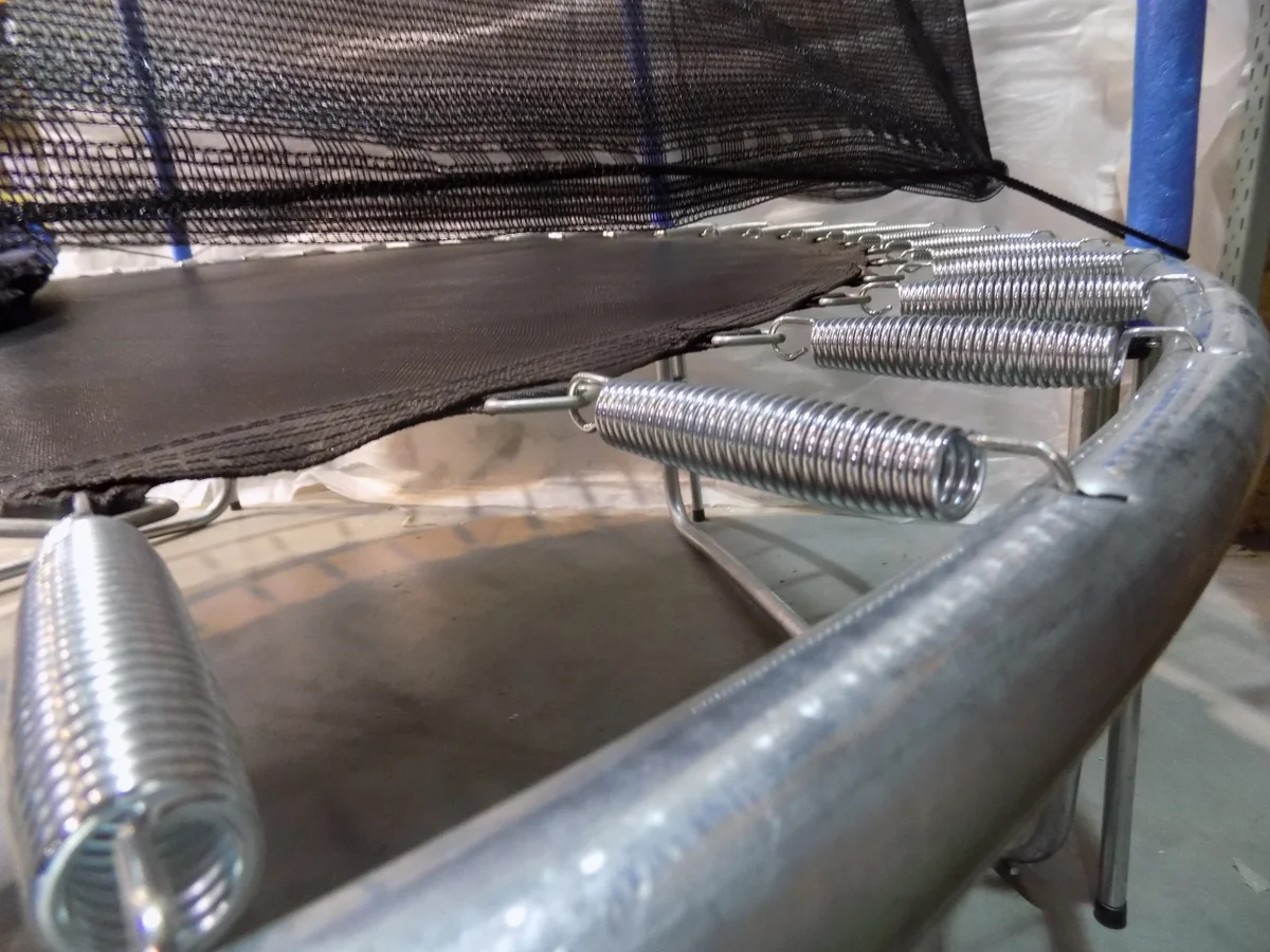 Slabě viditelné znaky užívání. Rez ve nitřních částech trubek. Funkčnost trampolíny v 100% stavu,byla dokompletována na novýma dílama. Tuto trampolínu si na prodejně nelze prohlédnout.