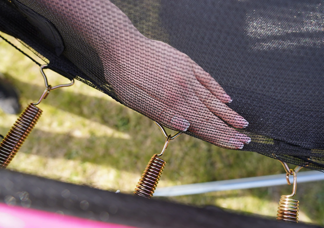 Vnitřní ochranná síťVýjimečnost vnitřní ochranné sítě spočívá v umístění v těsné blízkosti skákací plochy. Brání vypadnutí, kontaktu s rámem a šlápnutí do oblasti pružin. |