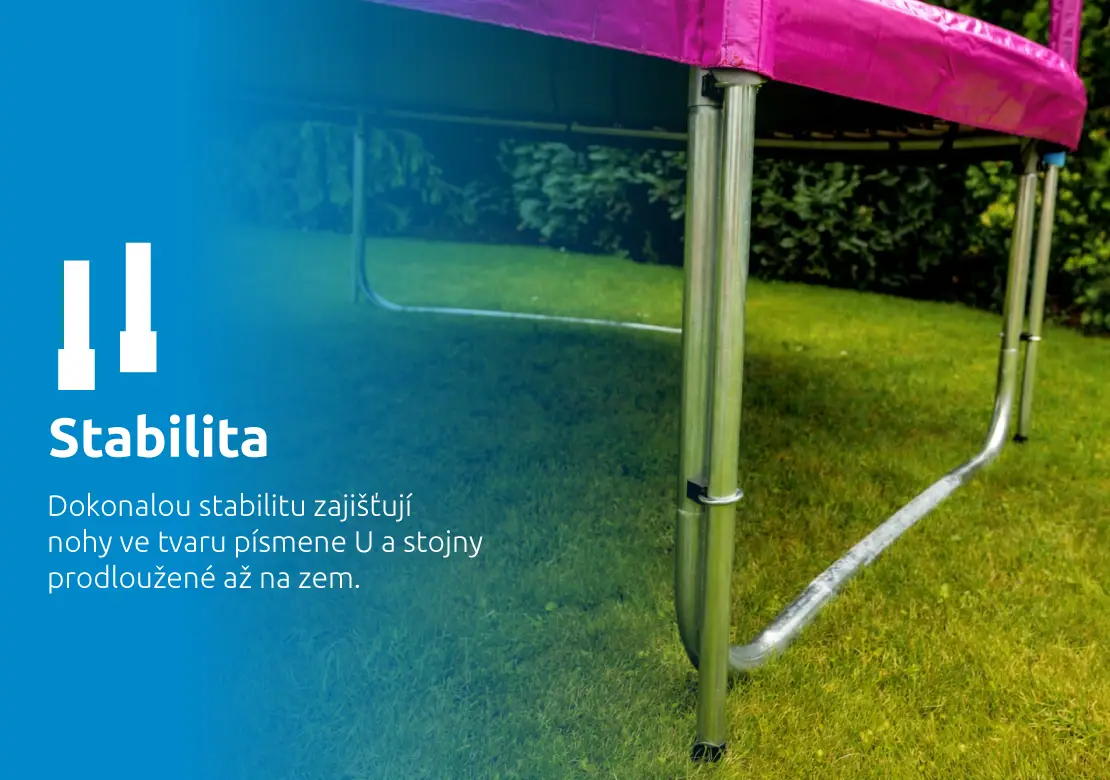 Součástí trampolín řady Standard je vnitřní ochranná síť, jež výrazně zvyšuje bezpečnost při skákání. Eliminuje riziko pádu mimo trampolínu, kontakt s rámem a vniknutí nohy do prostoru pružin. Síť vypíná horní obruč z ocelových prutů, která udržuje tvar trampolíny a zajišťuje pevnost její vrchní části. Vstupní otvor v síti se snadno uzavírá zipem a přezkami. Jedinečná úprava skákací plochy zabraňuje odření pokožky a schůdky, které trampolínu doplňují, jsou pevné, stabilní a protiskluzové.