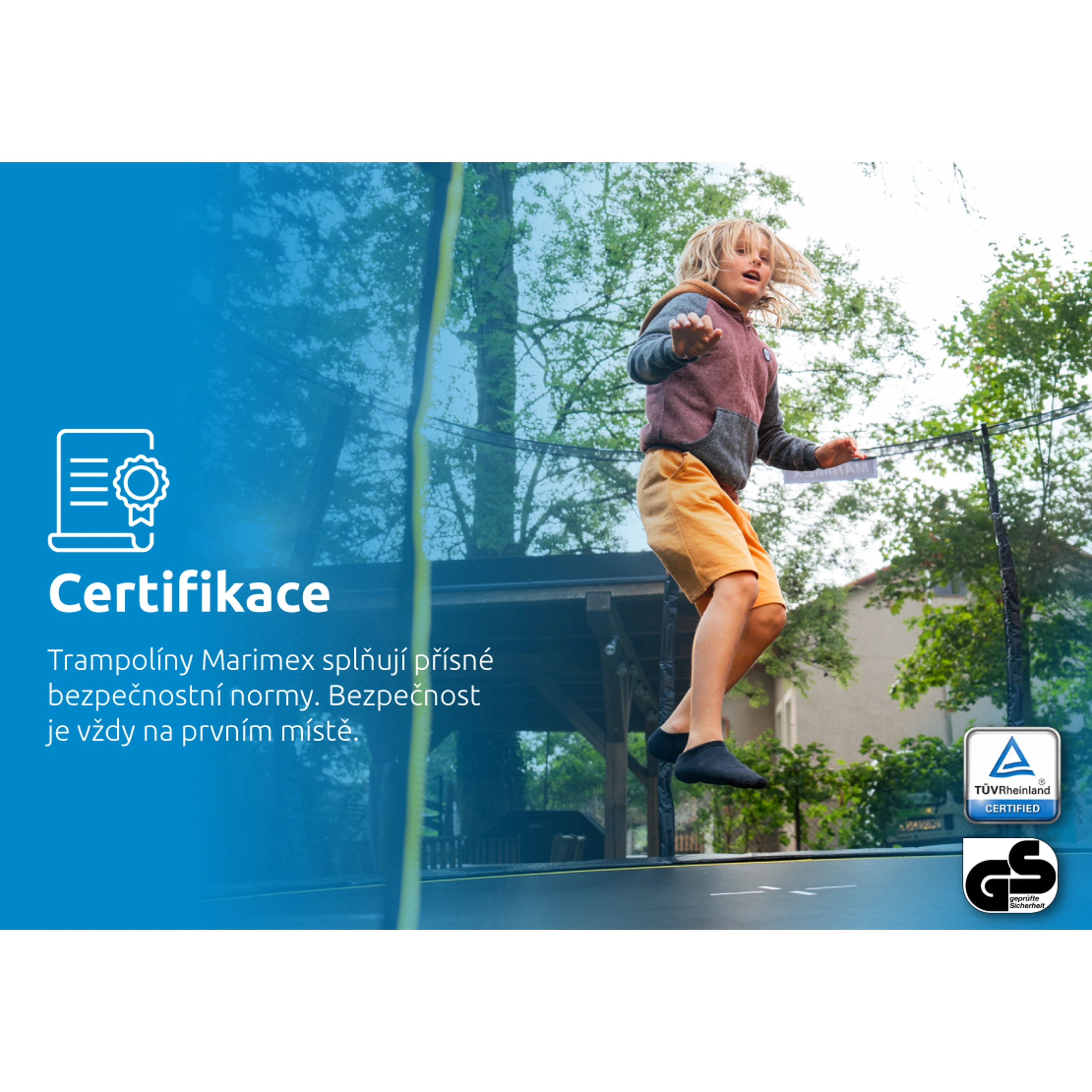 Certifikace bezpečnostiNaše trampolíny splňují přísné bezpečnostní normy a jsou certifikovány značkami TÜV SÜD a GS. Bezpečnost trampolín je pro nás prioritou. |