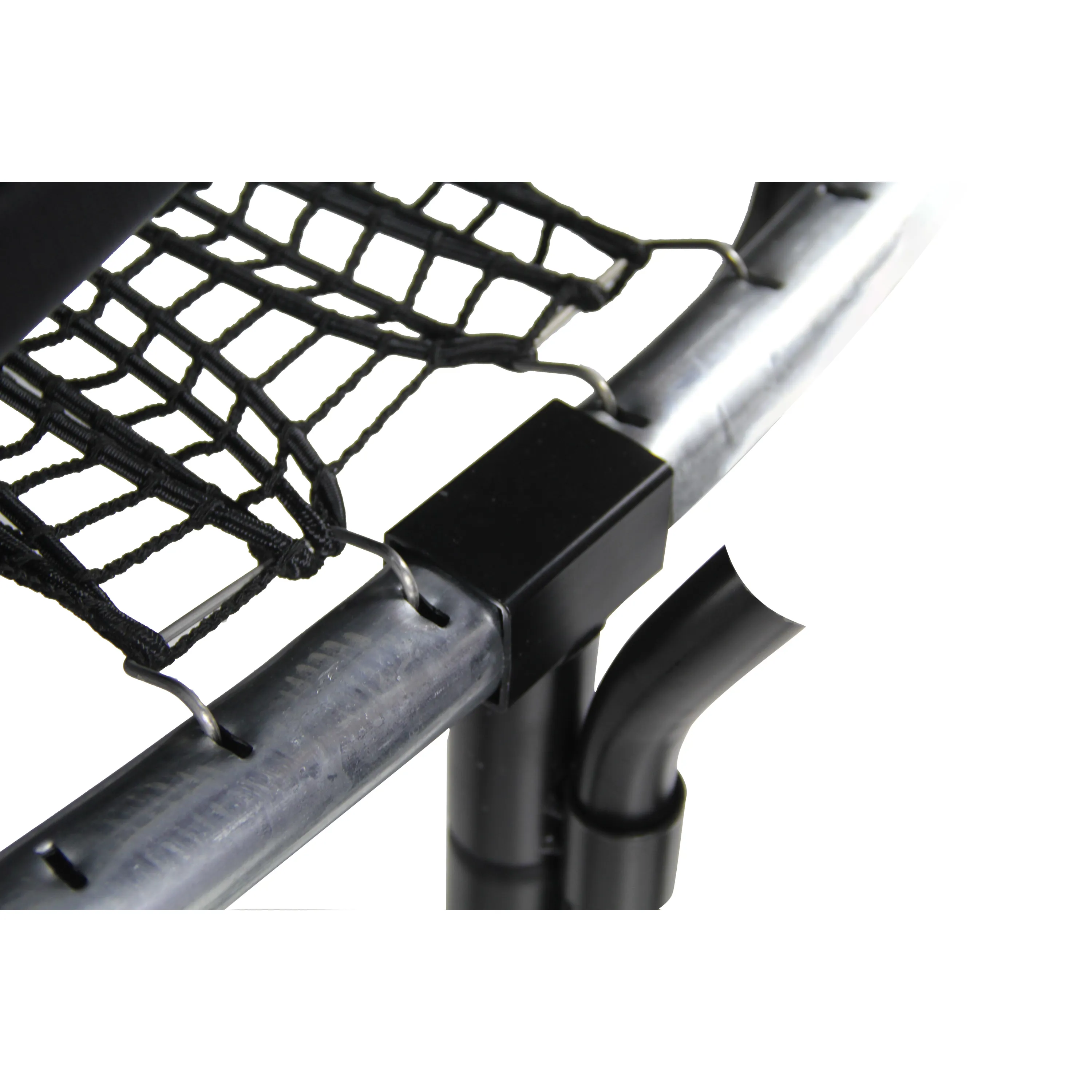 Nová technologie upevnění skákací plochy do rámu. Elastický výplet namísto pružin je bezpečnější, zvyšuje flexibilitu odrazové plochy a způsobuje měkčí dopad