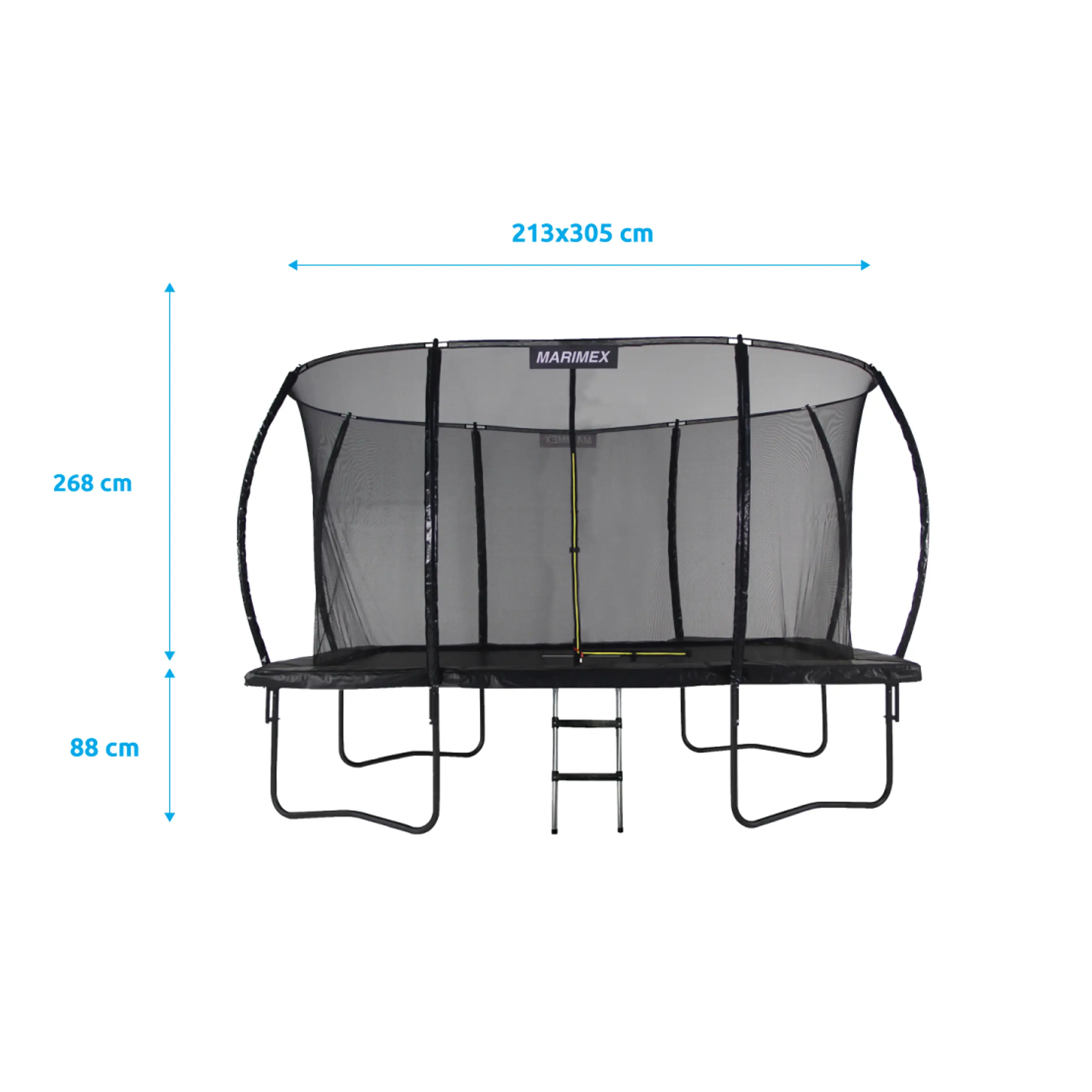 Vnitřní ochrannou síť najdete přímo v balení, nemusíte si ji dokupovat zvlášť. Vnitřní ochranná síť je bezpečnější než vnější síť - brání přístupu skákajícího do části s pružinami. Vstupní prostor je zajištěn přezkami a brání vypadnutí. Tyče jsou obaleny ochranným návlekem z měkčené pěny. Nohy trampolíny jsou samostatné a zvyšují stabilitu celé trampolíny. Spojení tyčí nohou trampolíny a sítě je jištěno speciálními sponami.