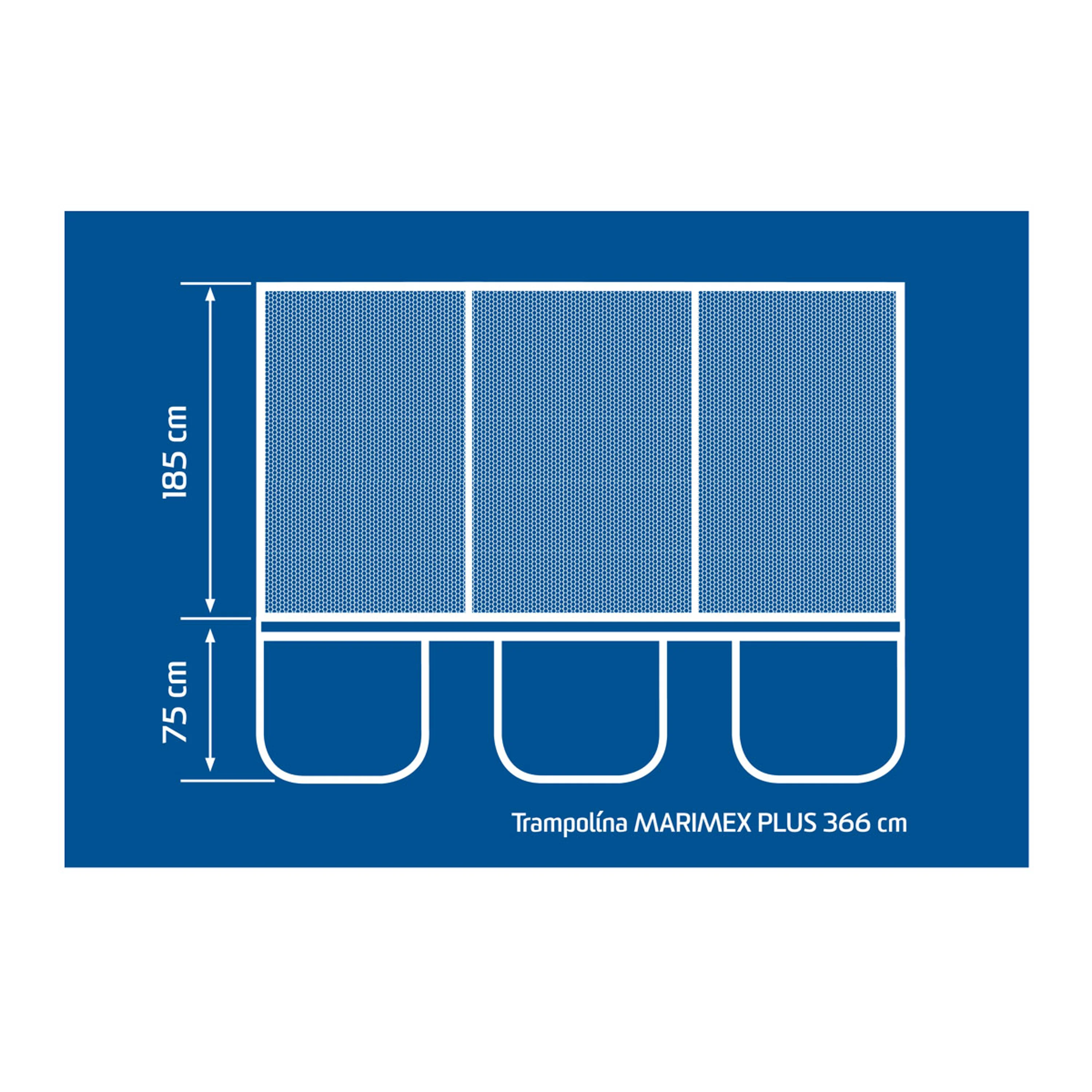 Trampolína Marimex je skvělým doplňkem každé zahrady. Děti skákání na trampolíně milují a při skákání si snadno zacvičí i dospělí - nosnost je až 150 kg. Dokonalou stabilitu zajišťují čtyři nohy ve tvaru písmene U.