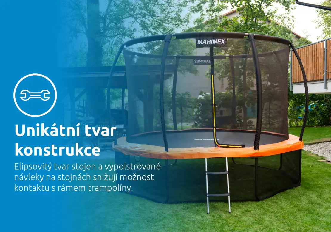 Prémiová řada se vyznačuje elipsovitým tvarem stojen, který spolu s polstrovanými návleky výrazně snižuje riziko kontaktu s rámem. Klíčovým prvkem je také vnitřní ochranná síť bránící vypadnutí mimo skákací plochu a zamezující šlápnutí do oblasti pružin. Bezpečnost zvyšuje i řada dalších detailů, jako pružiny skryté pod ochranným krytem, protiskluzové schůdky, úprava skákací plochy zabraňující odření pokožky i vstup zajištěný pomocí zipu a přezek. Každá část konstrukce je navržena s důrazem na bezpečnost, která je pro Marimex absolutní prioritou. S tím souvisí i splnění přísných bezpečnostních norem.