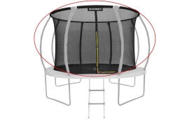 Vnitřní ochrannou síť najdete přímo v balení, nemusíte si ji dokupovat zvlášť. Vnitřní ochranná síť je bezpečnější než vnější síť - brání přístupu skákajícího do části s pružinami. Vstupní prostor je zajištěn třemi přezkami a brání vypadnutí. Tyče jsou obaleny ochranným návlekem z měkčené pěny. Nohy trampolíny jsou samostatné a zvyšují stabilitu celé trampolíny. Spojení tyčí nohou trampolíny a sítě je jištěno speciálními sponami.