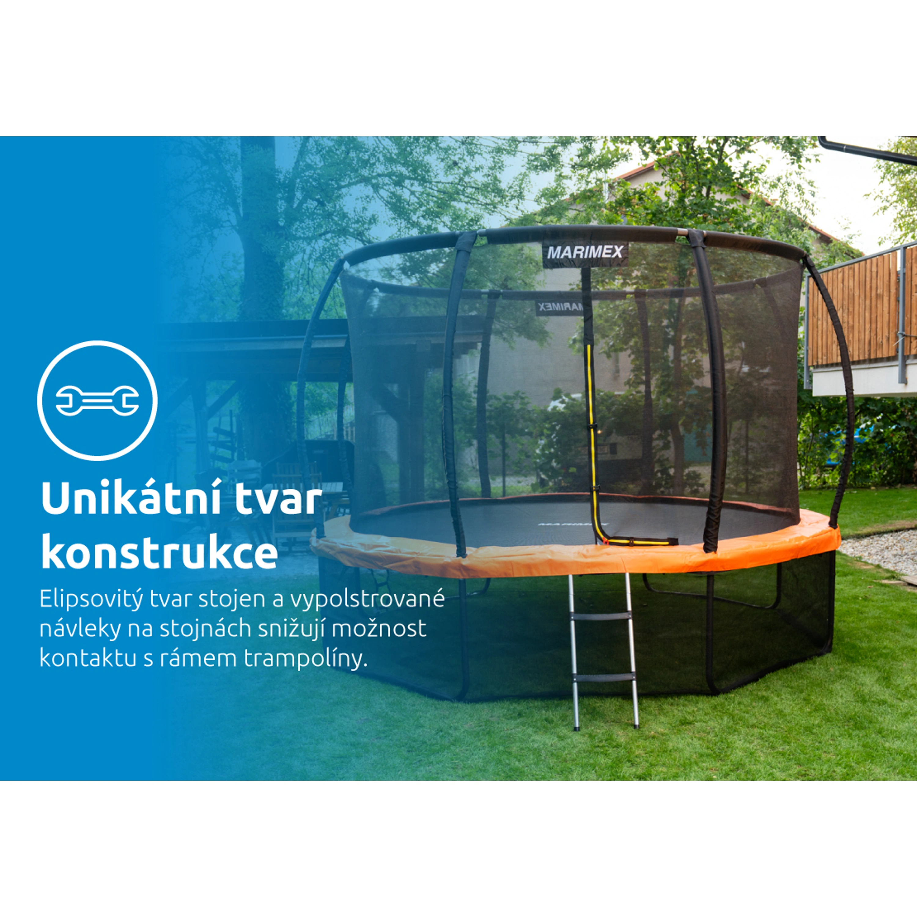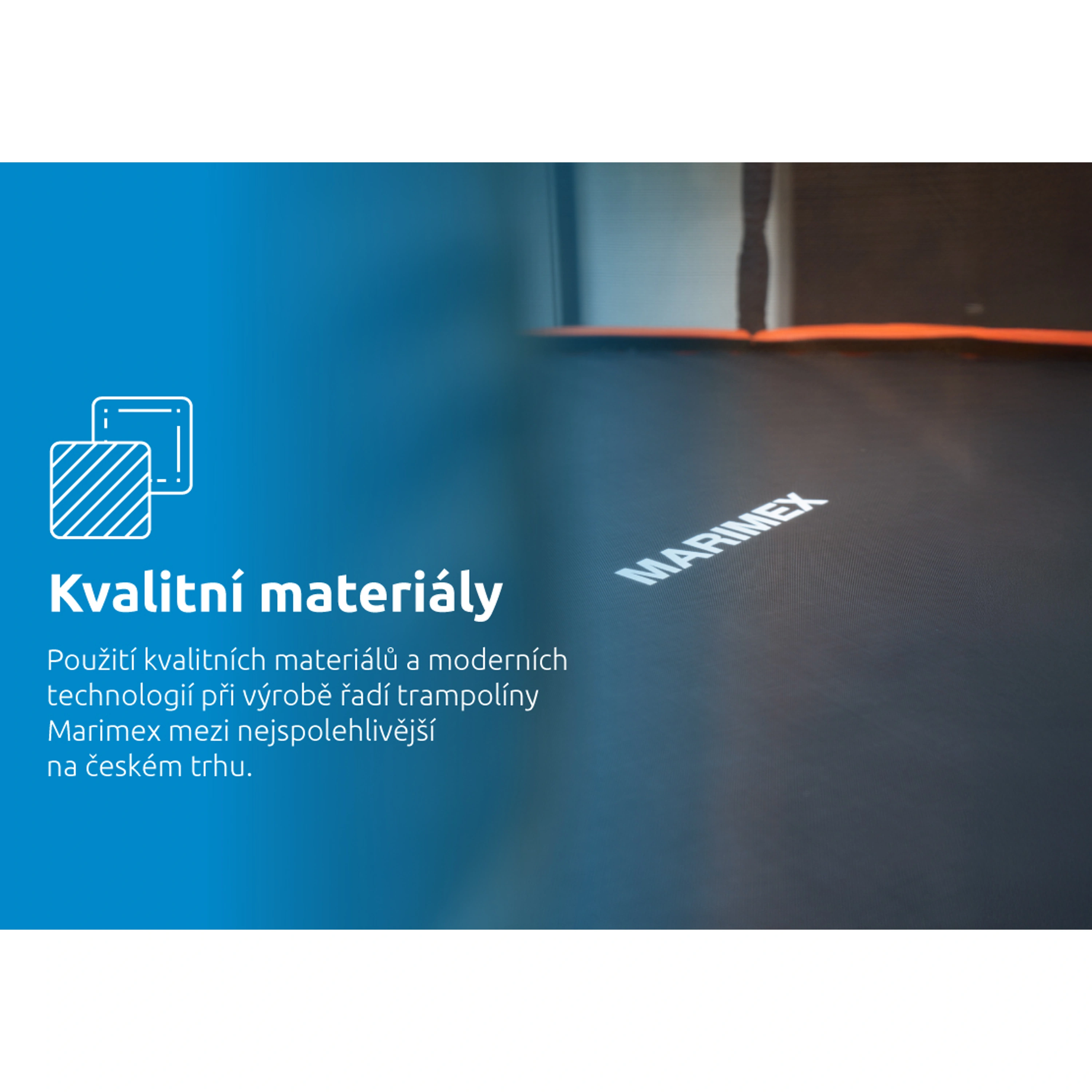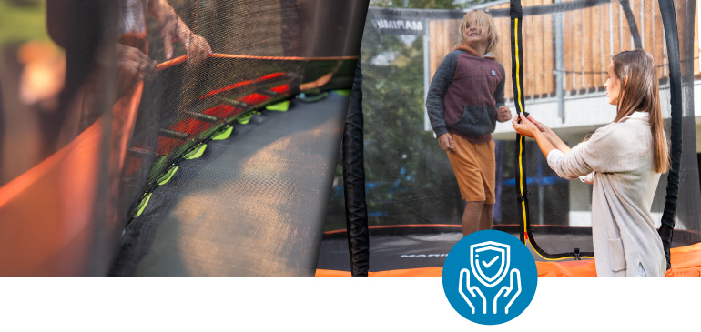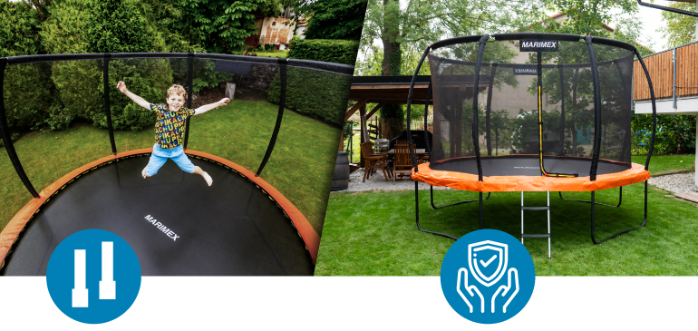 Prémiová řada se vyznačuje elipsovitým tvarem stojen, který spolu s polstrovanými návleky výrazně snižuje riziko kontaktu s rámem. Klíčovým prvkem je také vnitřní ochranná síť bránící vypadnutí mimo skákací plochu a zamezující šlápnutí do oblasti pružin. Bezpečnost zvyšuje i řada dalších detailů, jako pružiny skryté pod ochranným krytem, protiskluzové schůdky, úprava skákací plochy zabraňující odření pokožky i vstup zajištěný pomocí zipu a přezek. Každá část konstrukce je navržena s důrazem na bezpečnost, která je pro Marimex absolutní prioritou. S tím souvisí i splnění přísných bezpečnostních norem.