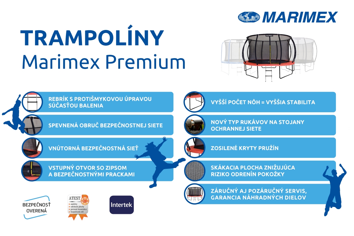 Certifikace bezpečnostiVšechny naše trampolíny splňují přísné bezpečností normy a jsou certifikovány zkušebnou Intertek. Bezpečnost trampolín je pro nás prioritou. |