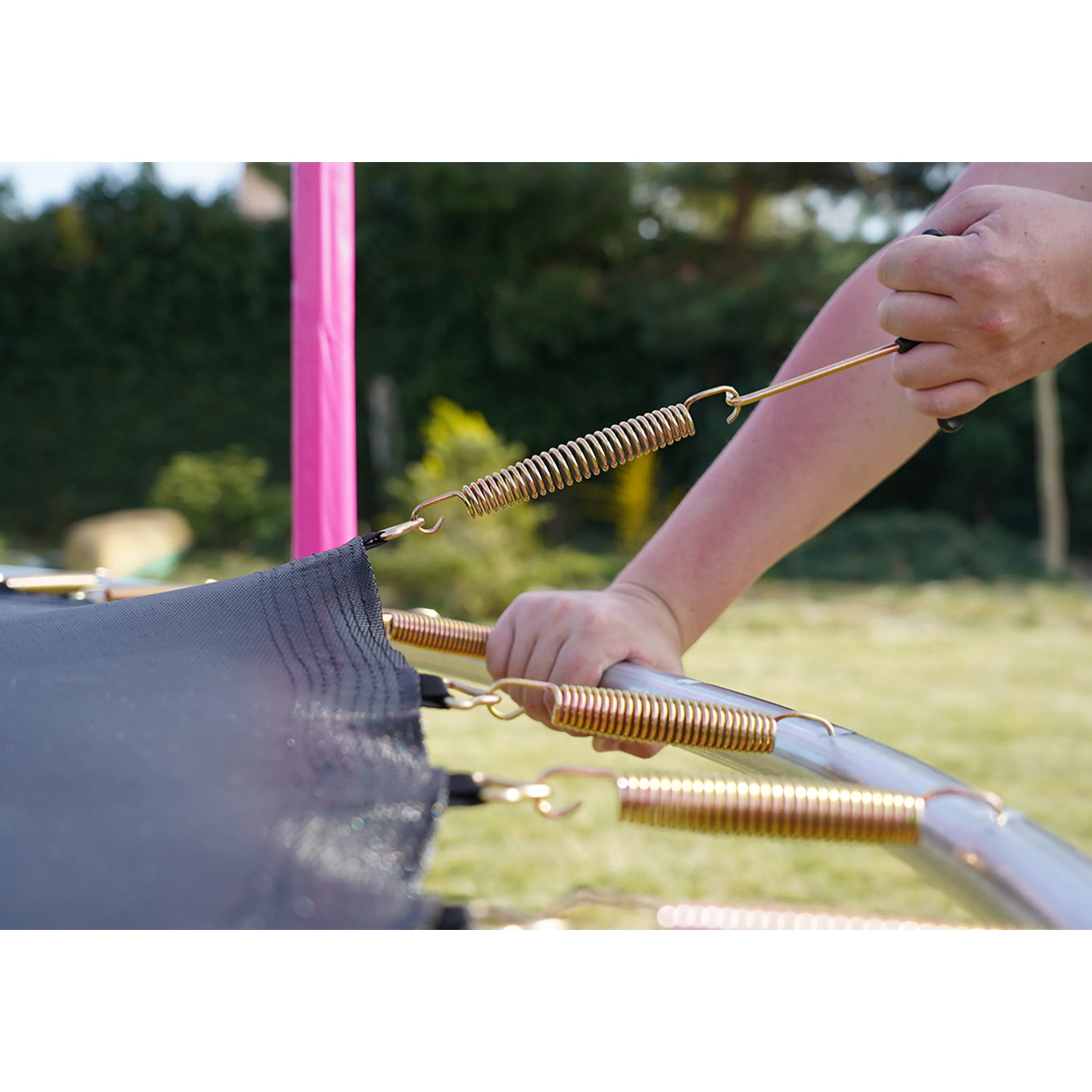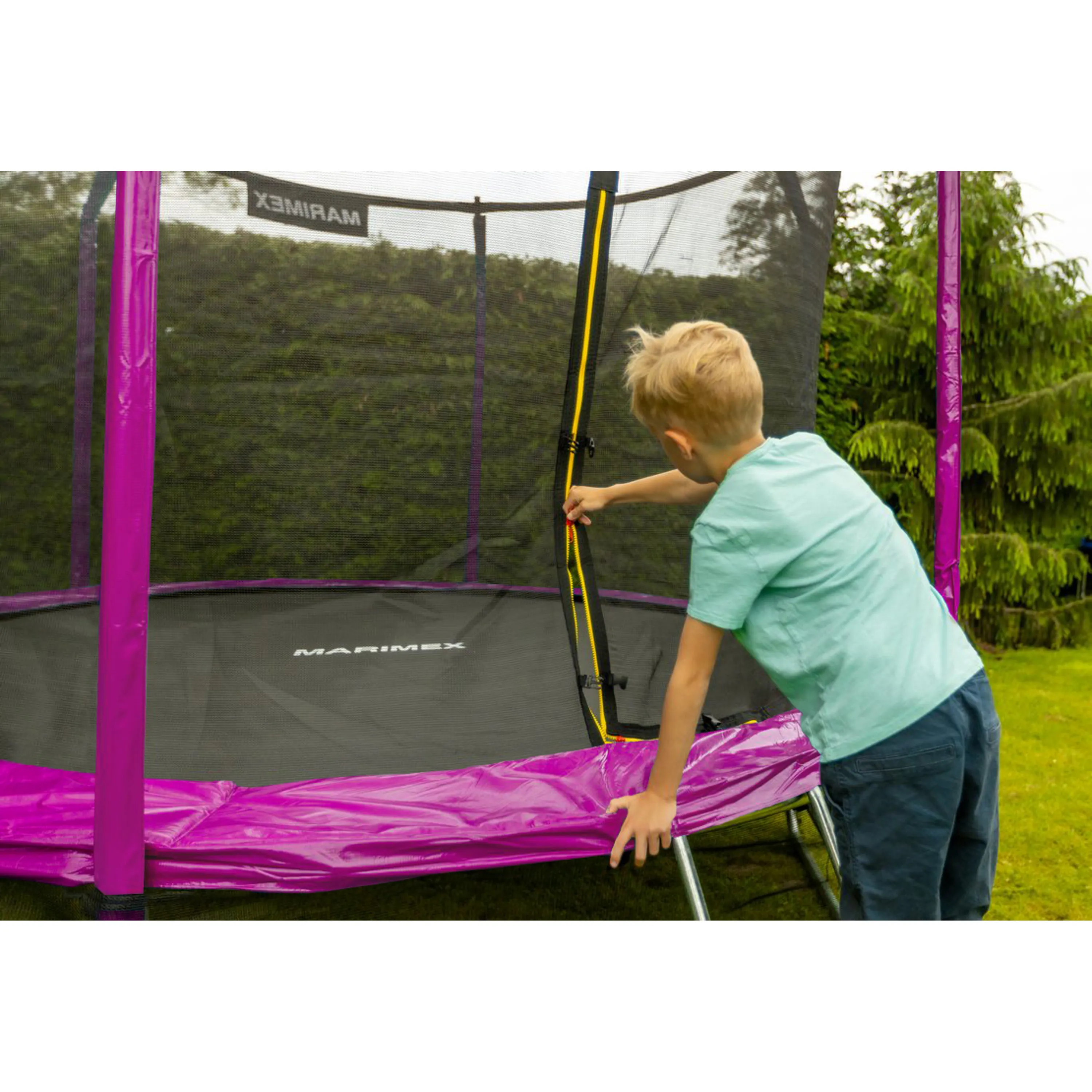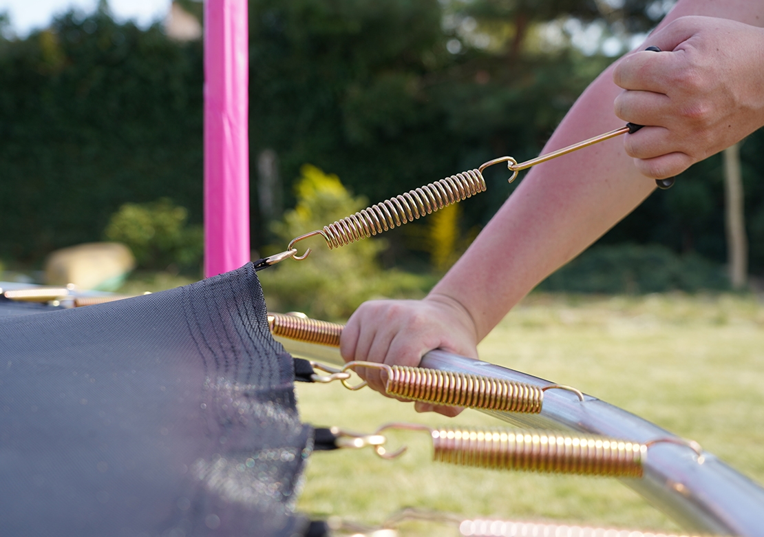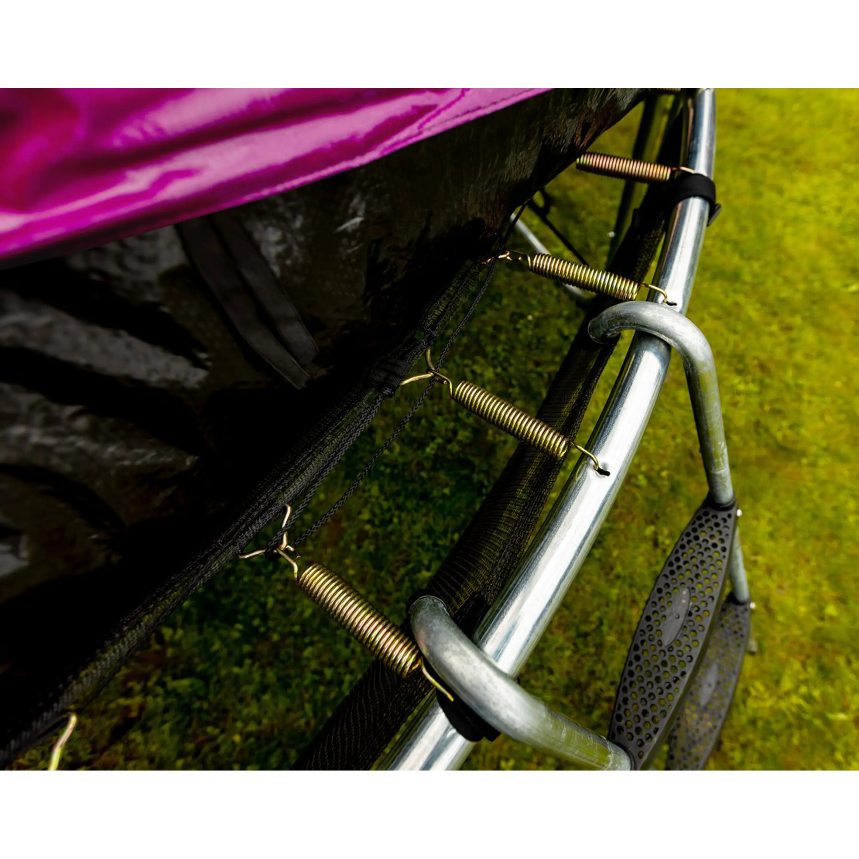 Vnitřní ochranná síťVýjimečnost vnitřní ochranné sítě spočívá v umístění v těsné blízkosti skákací plochy. Brání vypadnutí, kontaktu s rámem a šlápnutí do oblasti pružin. |