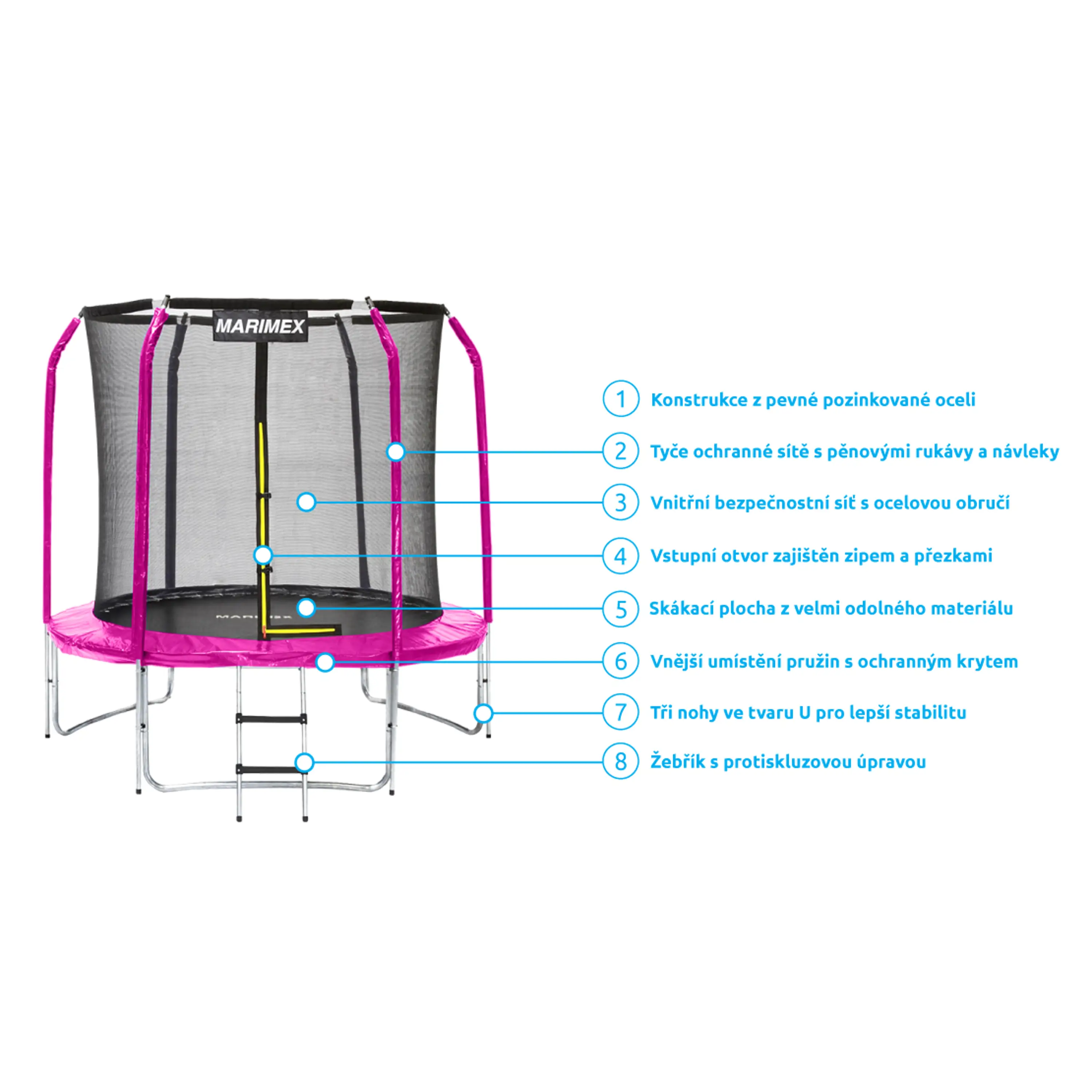 Trampolína Marimex Standard 244 cm růžová + vnitřní ochranná síť + schůdky ZDARMA