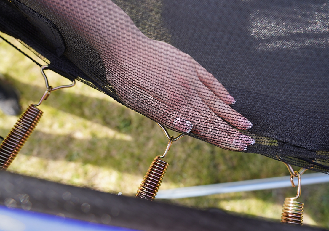 Vnitřní ochranná síťVýjimečnost vnitřní ochranné sítě spočívá v umístění v těsné blízkosti skákací plochy. Brání vypadnutí, kontaktu s rámem a šlápnutí do oblasti pružin. |