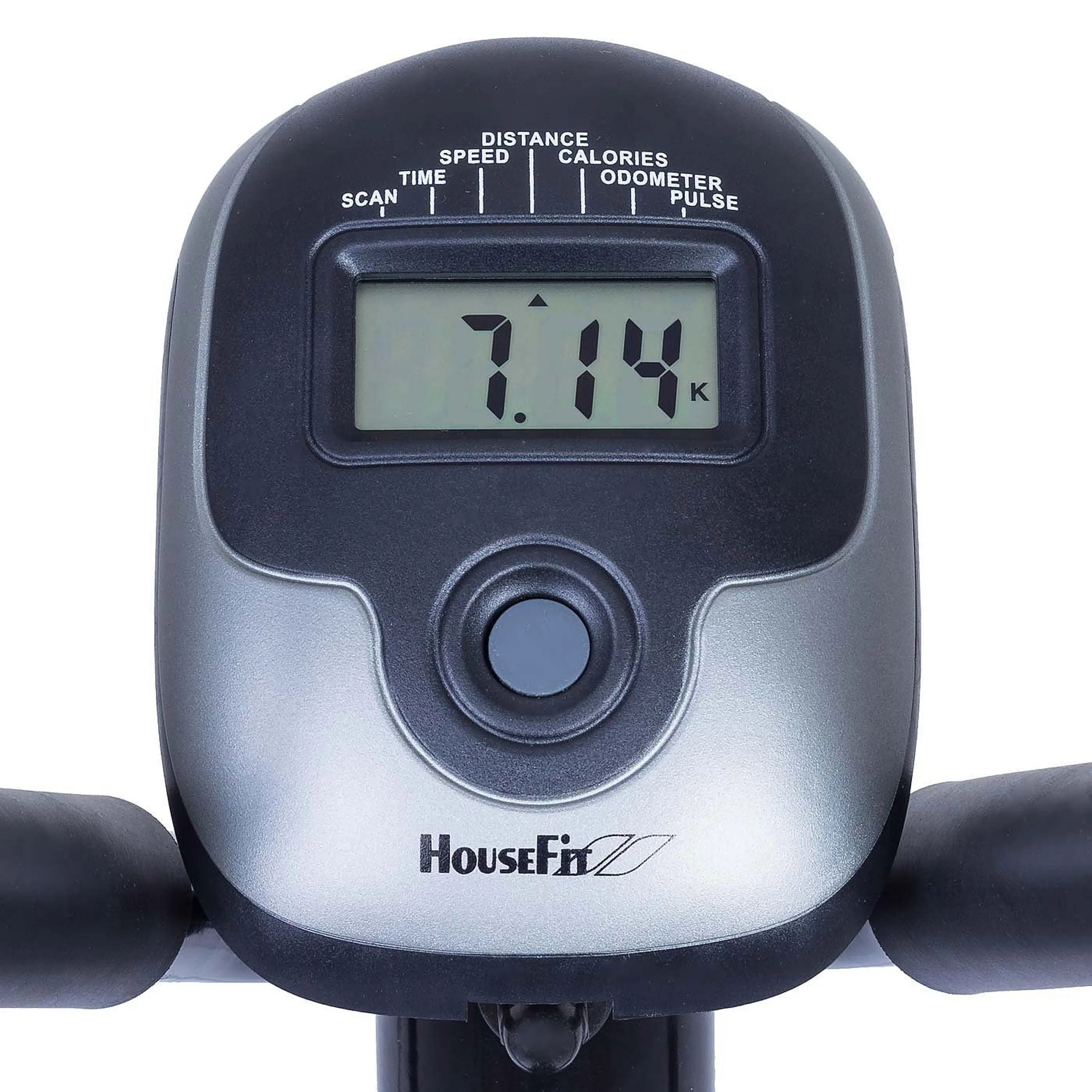 Eliptický trenažér HOUSEFIT MOTIO 15 je osazen přehledným a snadno ovladatelným počítačem s LCD displejem napájeným přes tužkové baterie (2 x AA - 1,5V). Měří čas, rychlost, vzdálenost, spotřebu (Kcal) a puls, který je snímán prostřednictvím dlaňových snímačů (hand pulse), funkce SCAN a ODO.