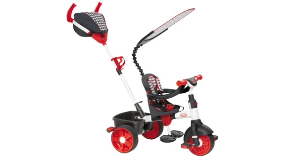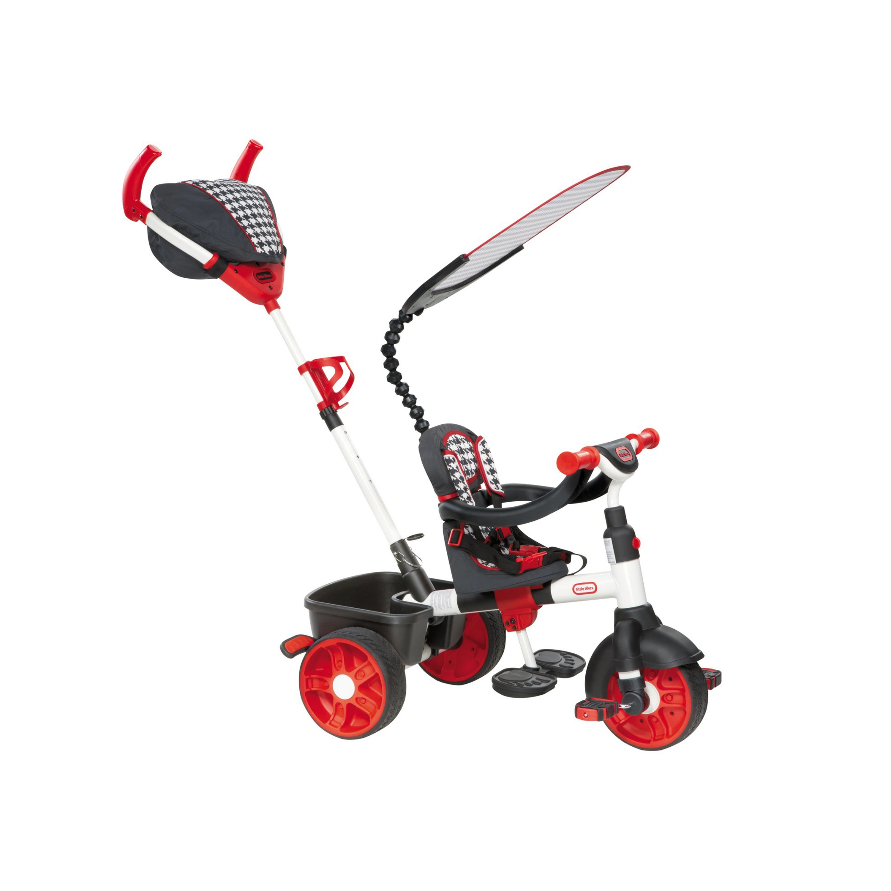 Kola jsou pevná a sedátko je stavitelné do 4 poloh. Tříkolka je vybavena pětibodovým bezpečnostním pásem, stavitelnou a odnímatelnou stříškou, neskluzovými pedály, držákem na pití a extra velkým úschovným prostorem. Na výsuvné tyči je přidělán pytlík, do kterého si rodiče mohou odložit předměty, které chtějí pořád po ruce.