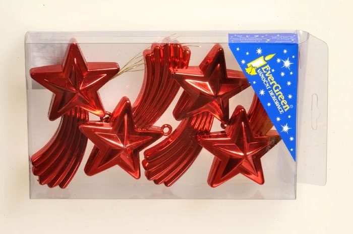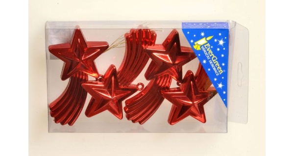Sada vánočních ozdob obsahuje 4 vánoční komety v červeném designu.