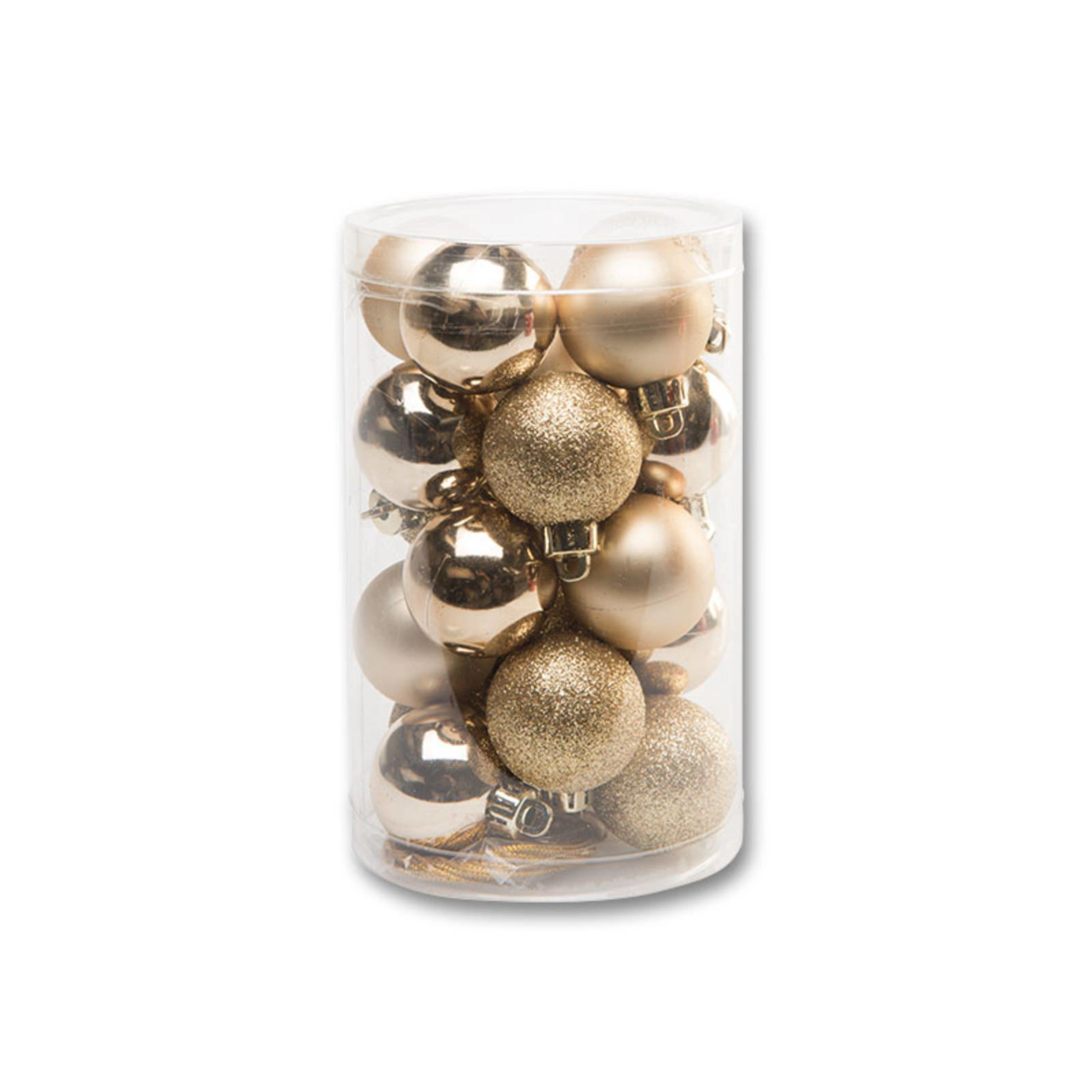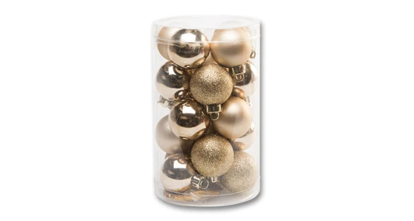 Tento set obsahuje 20 kusů vánočních koulí ve zlaté barvě.