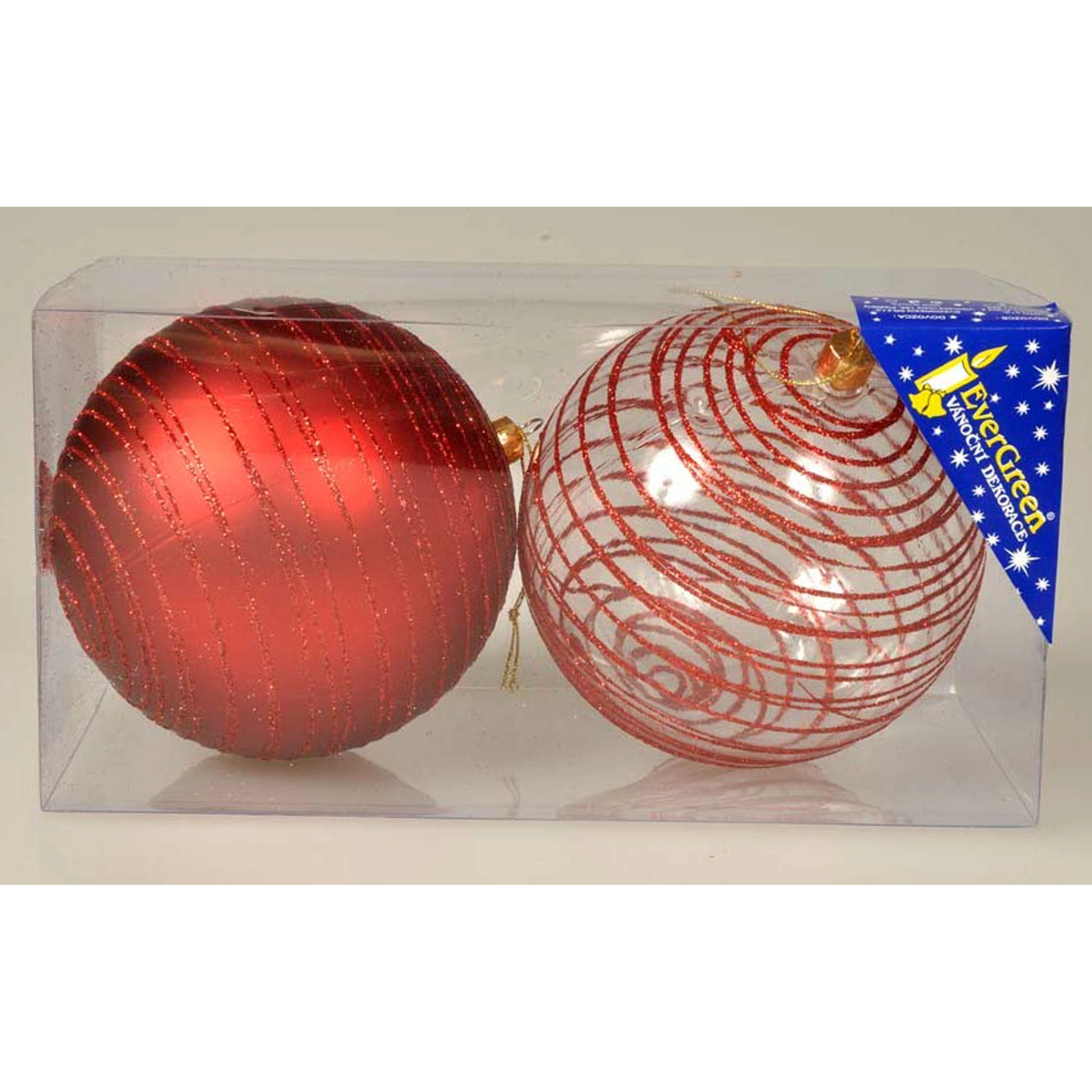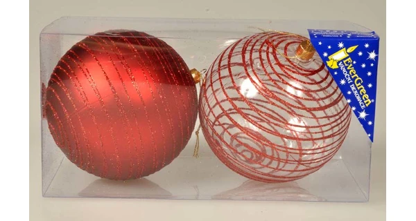 Sada vánočních ozdob obsahuje 2 vánoční koule v červeném designu.