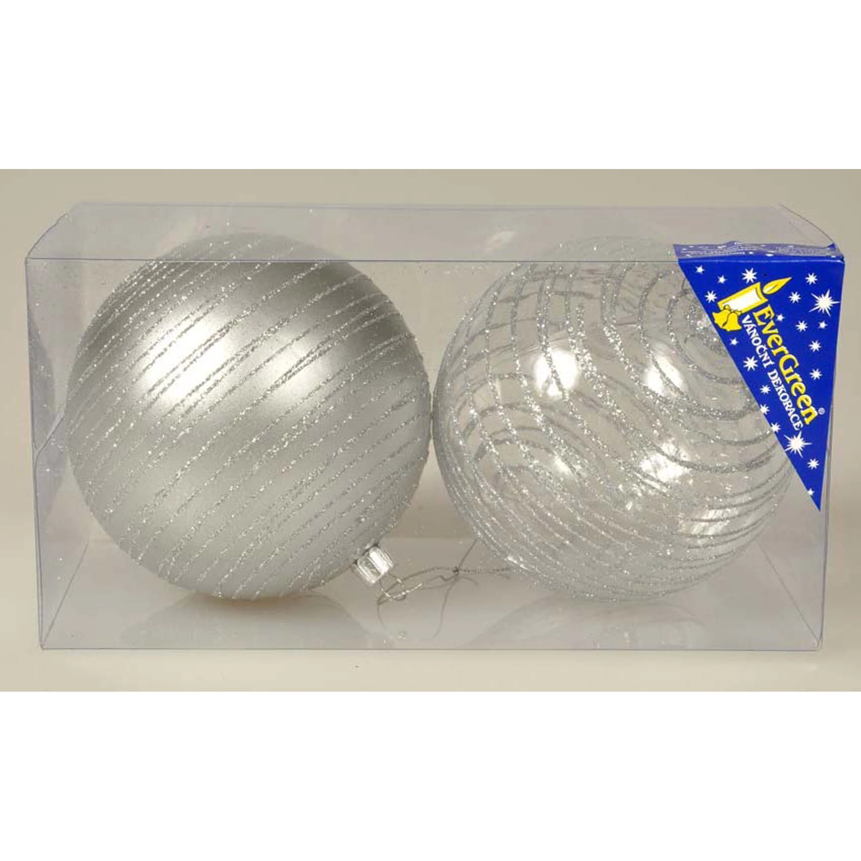 Sada vánočních ozdob obsahuje 2 vánoční koule ve stříbrném designu.