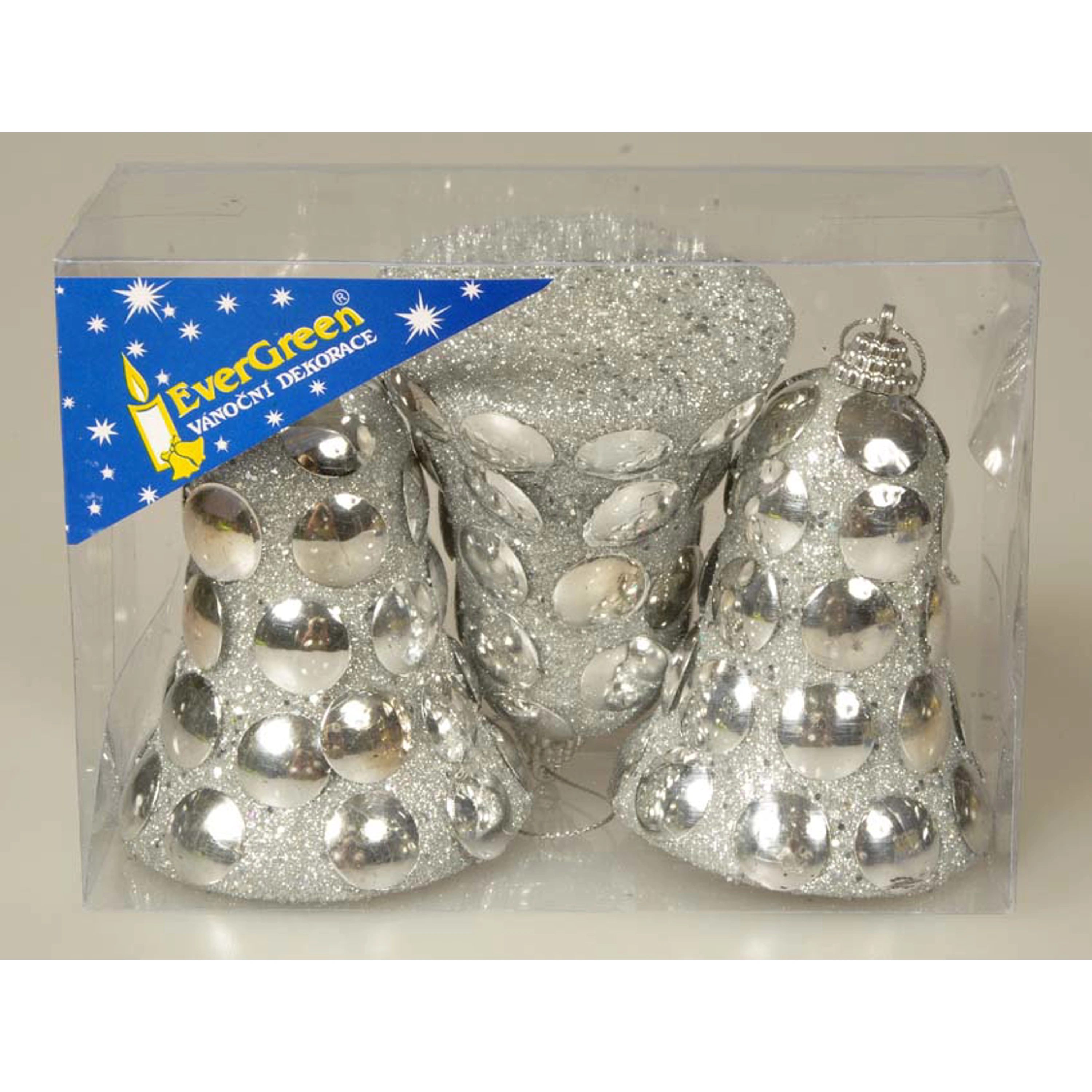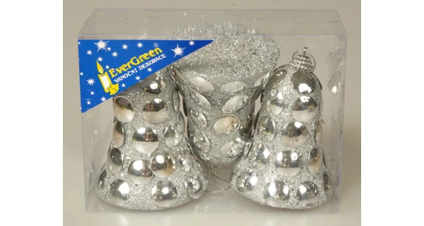 Sada vánočních ozdob obsahuje 3 vánoční zvonky ve stříbrném designu.
