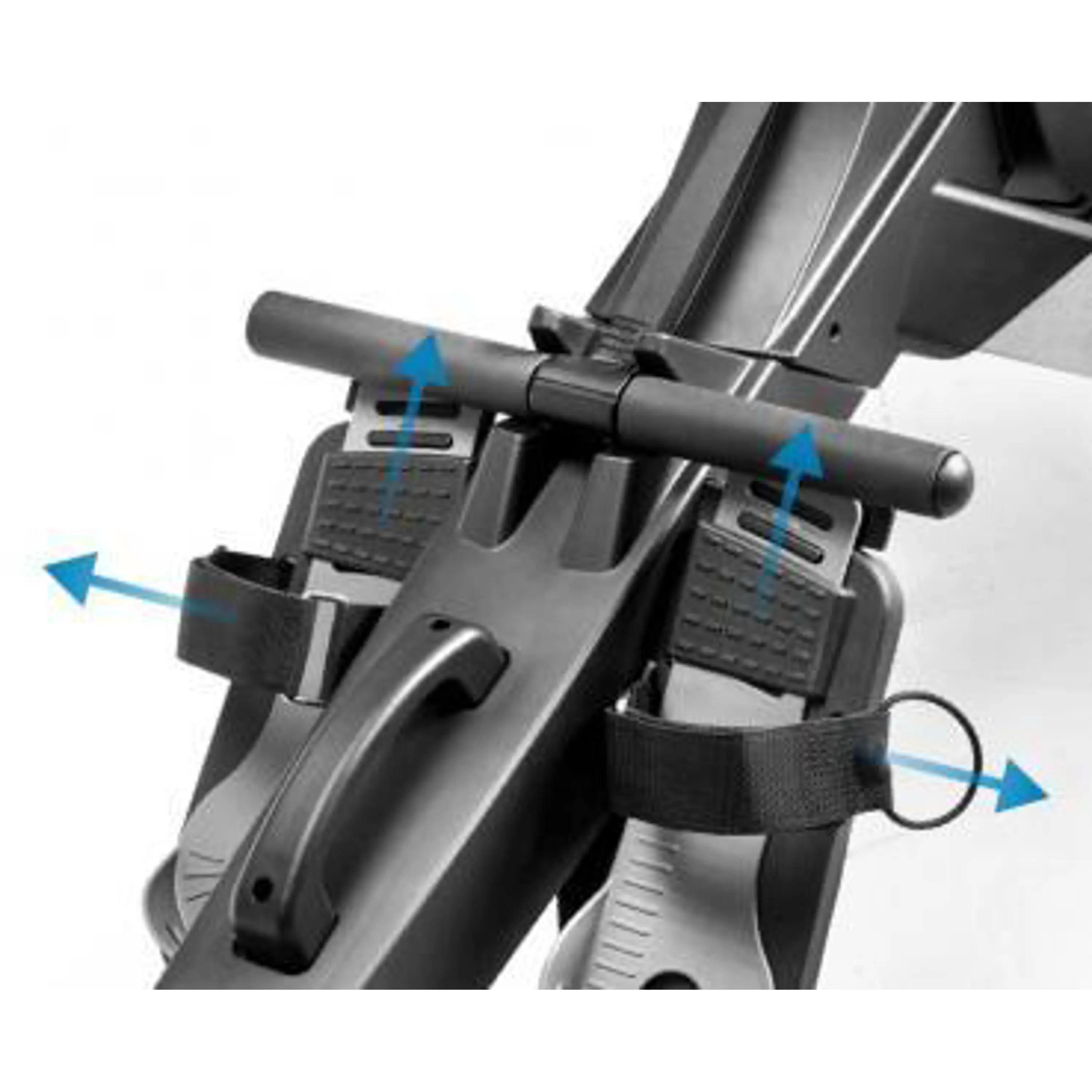 Profesionální nášlapy s možností nastavení dle velikosti nohy a se zvedací patou známé z profesionálních modelů zvyšují efektivitu tréninku, komfort a snižují zatížení kotníků. Rychlé a jednoduché zafixování chodidel přes řemínky na suchý zip pro maximální stabilitu při tréninku.