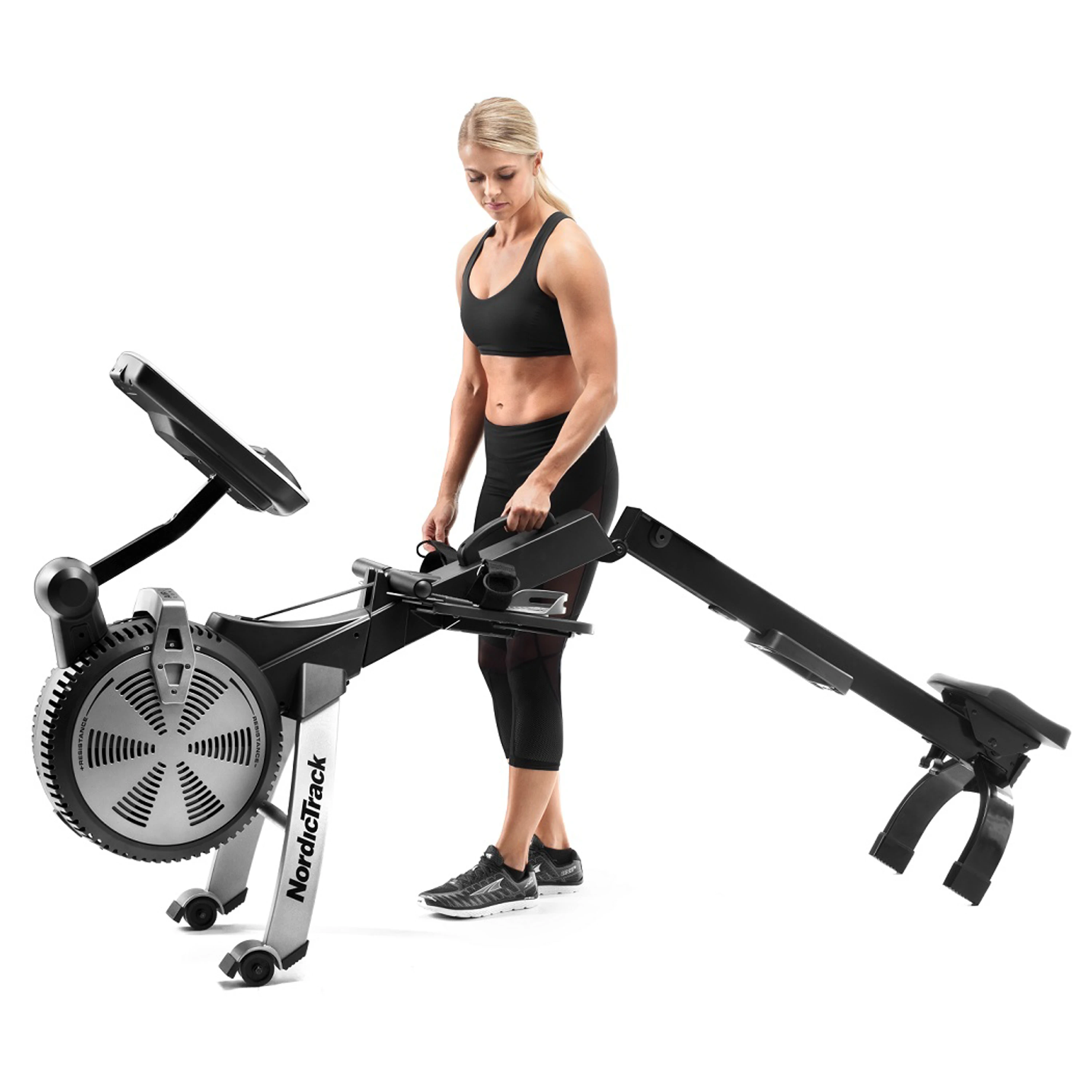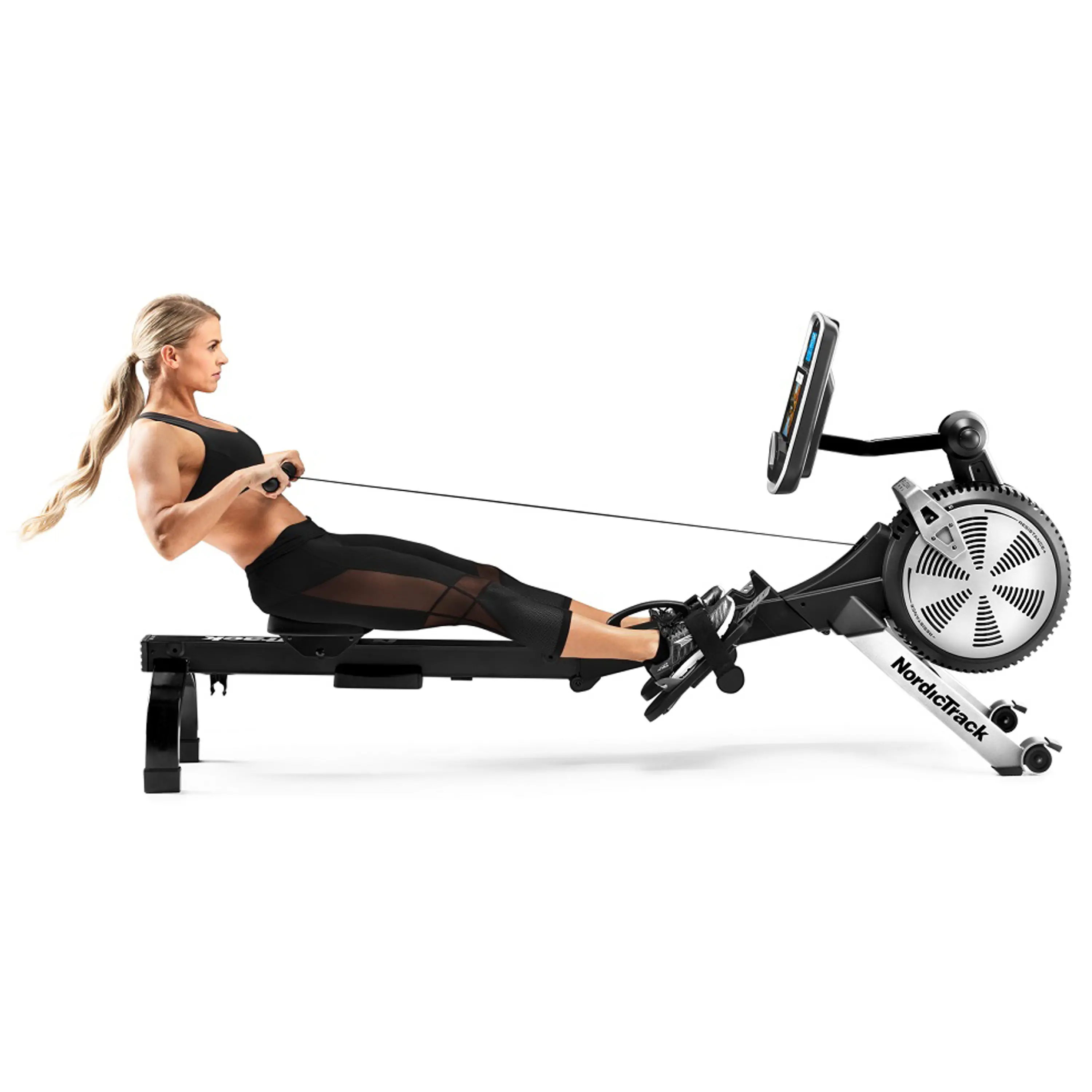 Veslovací trenažér NORDICTRACK RW850 patří mezi další domácí vesla, které mají odpor vytváření vzduchem, tak jak tomu je u všech profesionálních vesel. Tento model oproti svému předchudci nabízí modernější design, bohatší programovou nabídku větší variabilitu odporu apod. Dále nabízí naprosto plynulý a přirozený záběr je dán použitou vzduchovou brzdou, která je jinak výsadou komerčních strojů, stejně jako profesionální nastavitelné nášlapy či ergonomie posedu. Veslovací trenažér má dostatečný rozsah zátěže pro začátečníky i sportovně zaměřené veslaře, umožňuje ručně nastvit odpor veslování ve 26 úrovních pomocí posuvné páky, umístěné z boku stroje. Pojezd s ergonomicky tvarovaným gelovým sedlem je osazen profesionálními průmyslovými ložisky s dlouhodobou životností, díky tomu je jízda zcela plynulá i při dlouhotrvajícím tréninku s minimálním opotřebením. Veslo je ideálním společníkem pro vybudování kondice, posílení svalů břicha, zad, paží, či dolních končetin, případně účinné redukce podkožního tuku! Tento model disponuje masivním rámem s nosností až 130 kg