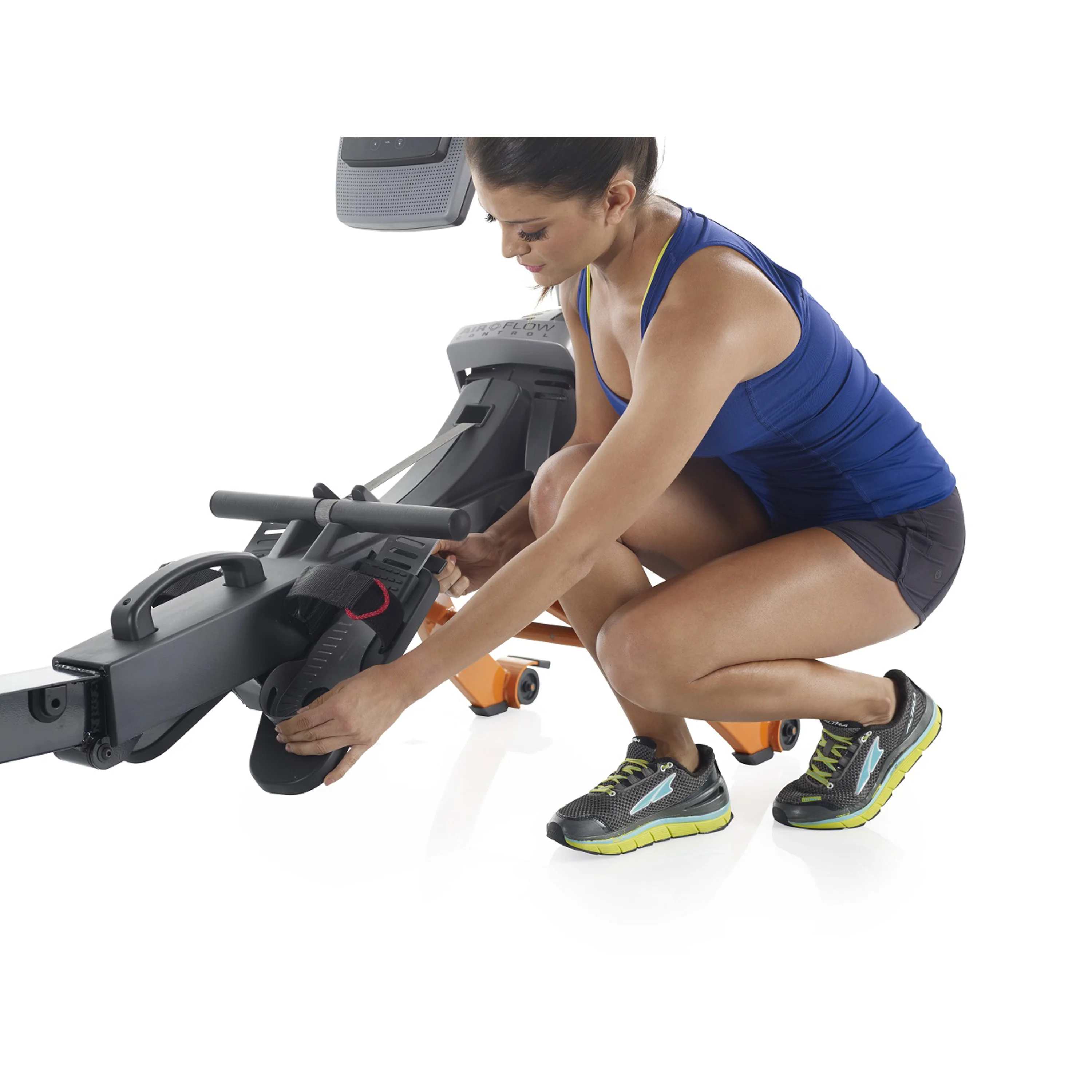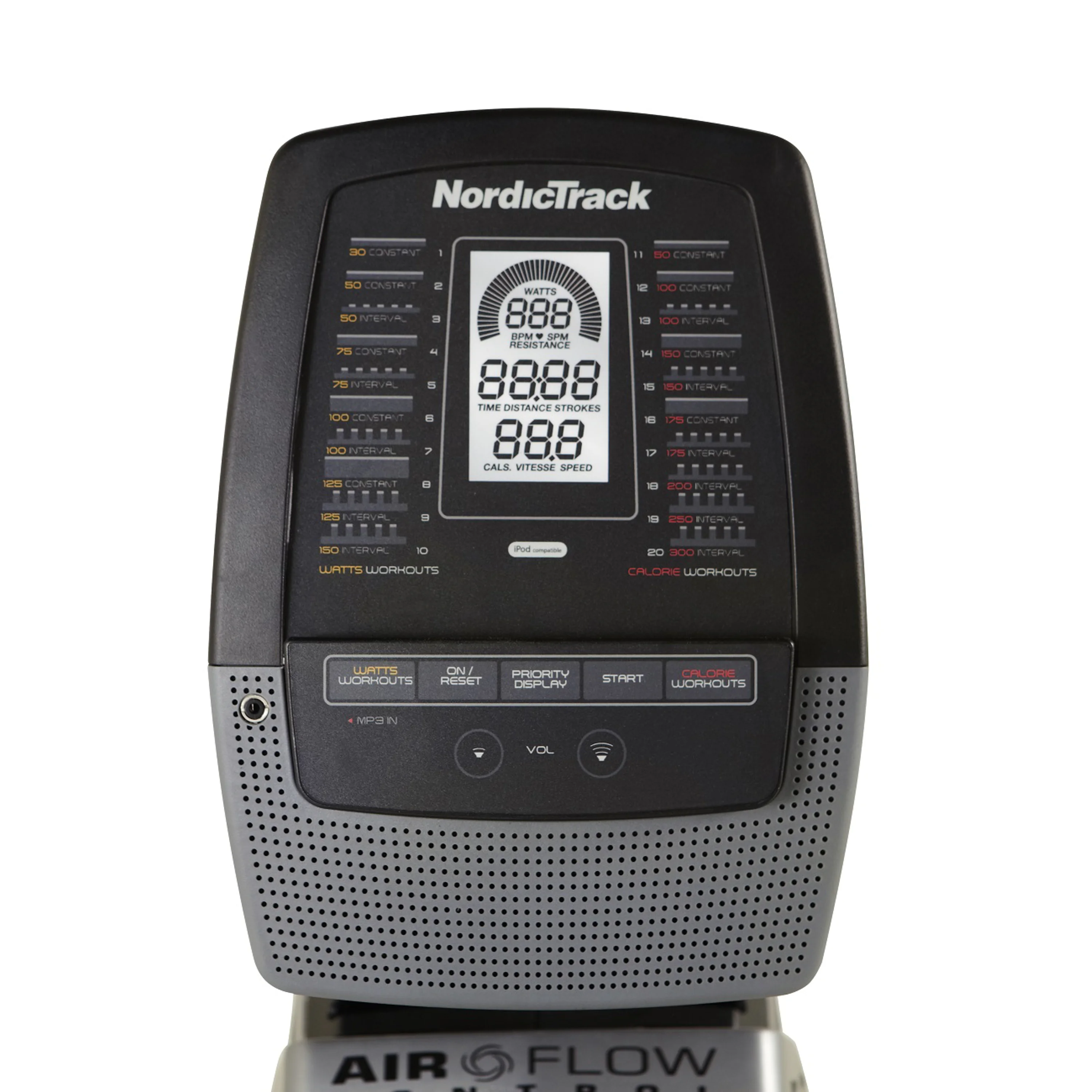 Počítač má multifunkční podsvícený 5" LCD displej s držákem na tablet, který je snadno ovladatelný a zobrazuje všechny běžné hodnoty tréninku. Vyobrazené parametry na displeji jsou: čas, aktuální rychlost, počet záběrů celkový a za minutu, watty, ujetá vzdálenost, spálené kalorie. Programová nabídka obsahuje celkem 20 přednastavených programů. 10 wattových a 10 pro spalování kalorií. Tyto programy ovšem neřídí zátěž, ta se nastavuje manuálně.
