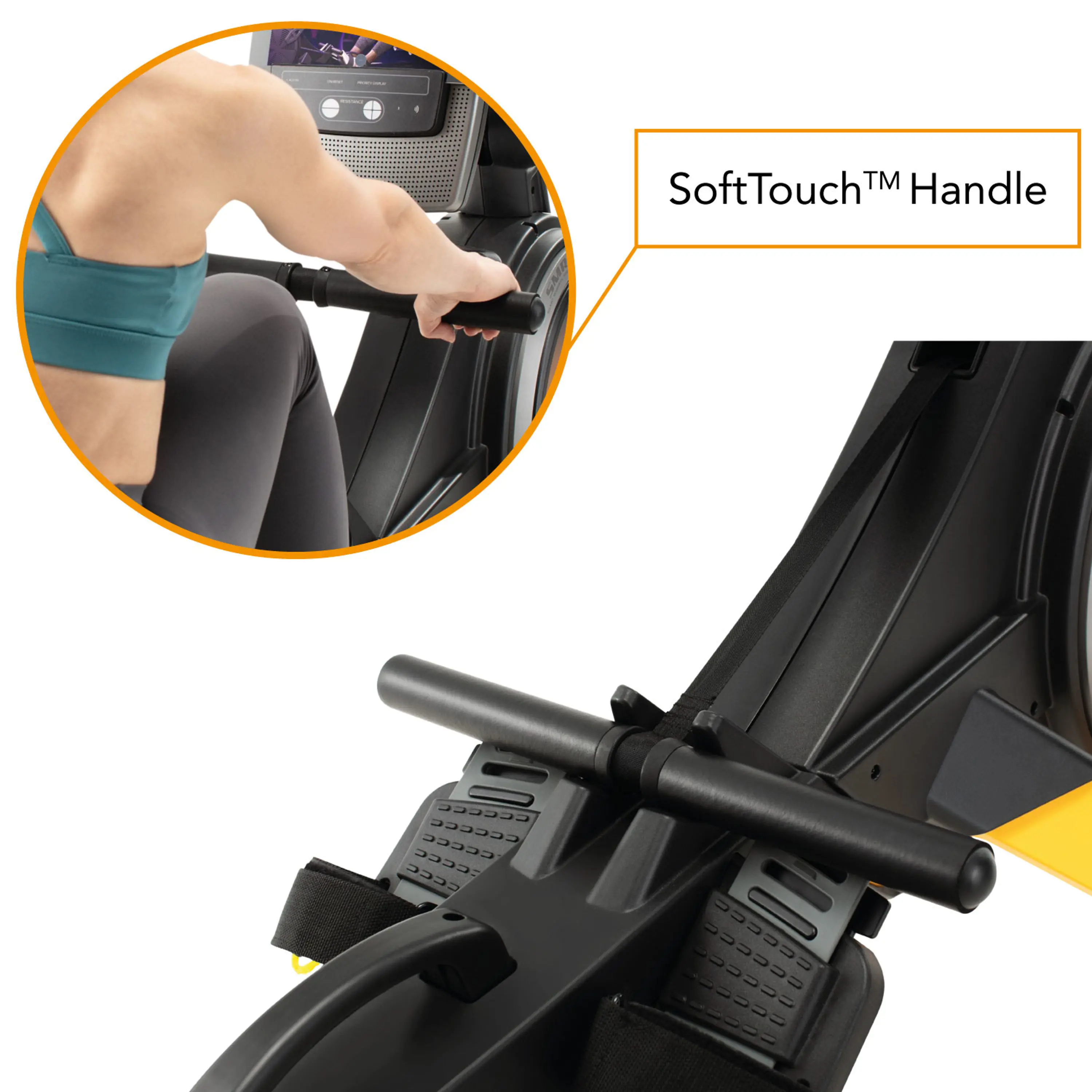 Monitor můžete snadno nastavit do optimální polohy podle vaší výšky pomocí aretačního šroubu, který je umístěn v jeho držáku. Profesionální nášlapy s možností nastavení podle velikosti chodidla jsou známé z profesionálních modelů a zvyšují efektivitu tréninku a snižují zatížení kotníků. Pro maximální stabilitu při cvičení jsou na pedálech řemínky na suchý zip pro rychlé a jednoduché zafixování chodidel.