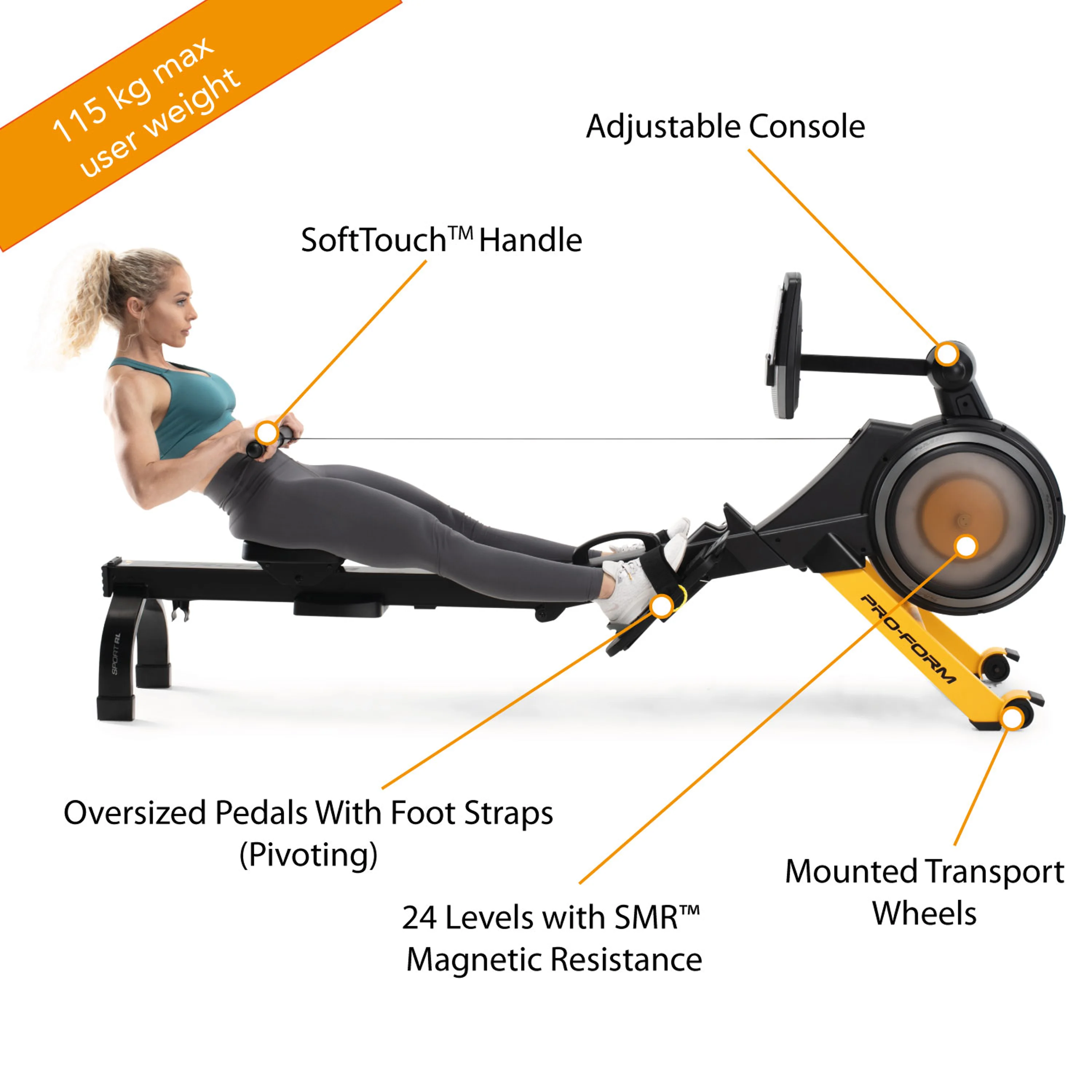 Veslařský trenažér PRO-FORM Sport RL je vybaven anatomicky tvarovaným sedlem pro komfortní jízdu po celou dobu tréninku. Dostatečně dlouhý pojezd je osazen průmyslovými ložisky, což zaručuje dlouhou životnost vesla i při pravidelném tréninku.
