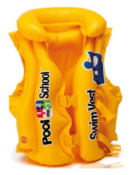 Dětská nafukovací vesta zaručí nejmenším plavcům bezpečnost a pohodlí. Vesta je vybavena pohodlným límcem a dvěma nastavitelnými přezkami. Je ideální pro použití při výpravách v lodičkách a člunech. Má bezpečnostní tříkomorový systém, který zajistí bezpečnost i v případě porušení některé části vesty. Při výrobě byl použit odolný vinyl.