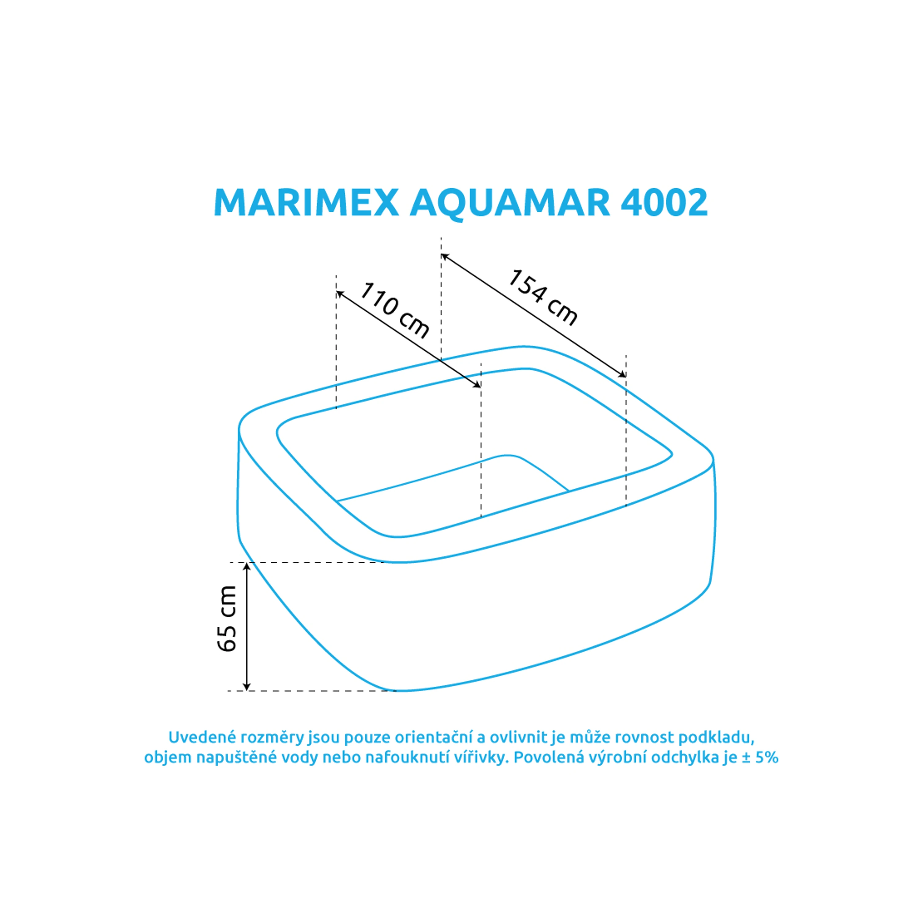 • Vnější průměr: 154 cm (po naplnění vodou, tolerance ± 5%)