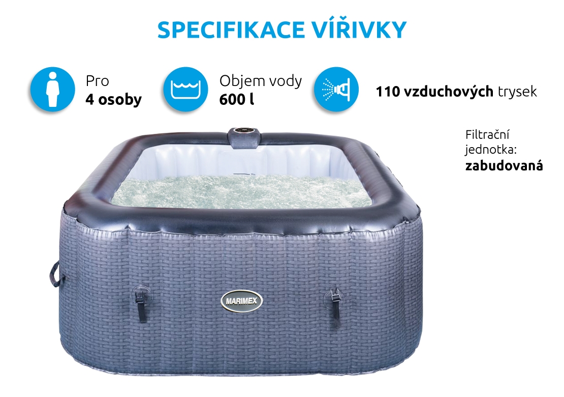 - Řídící a filtrační jednotka je zabudována do pláště vířivky