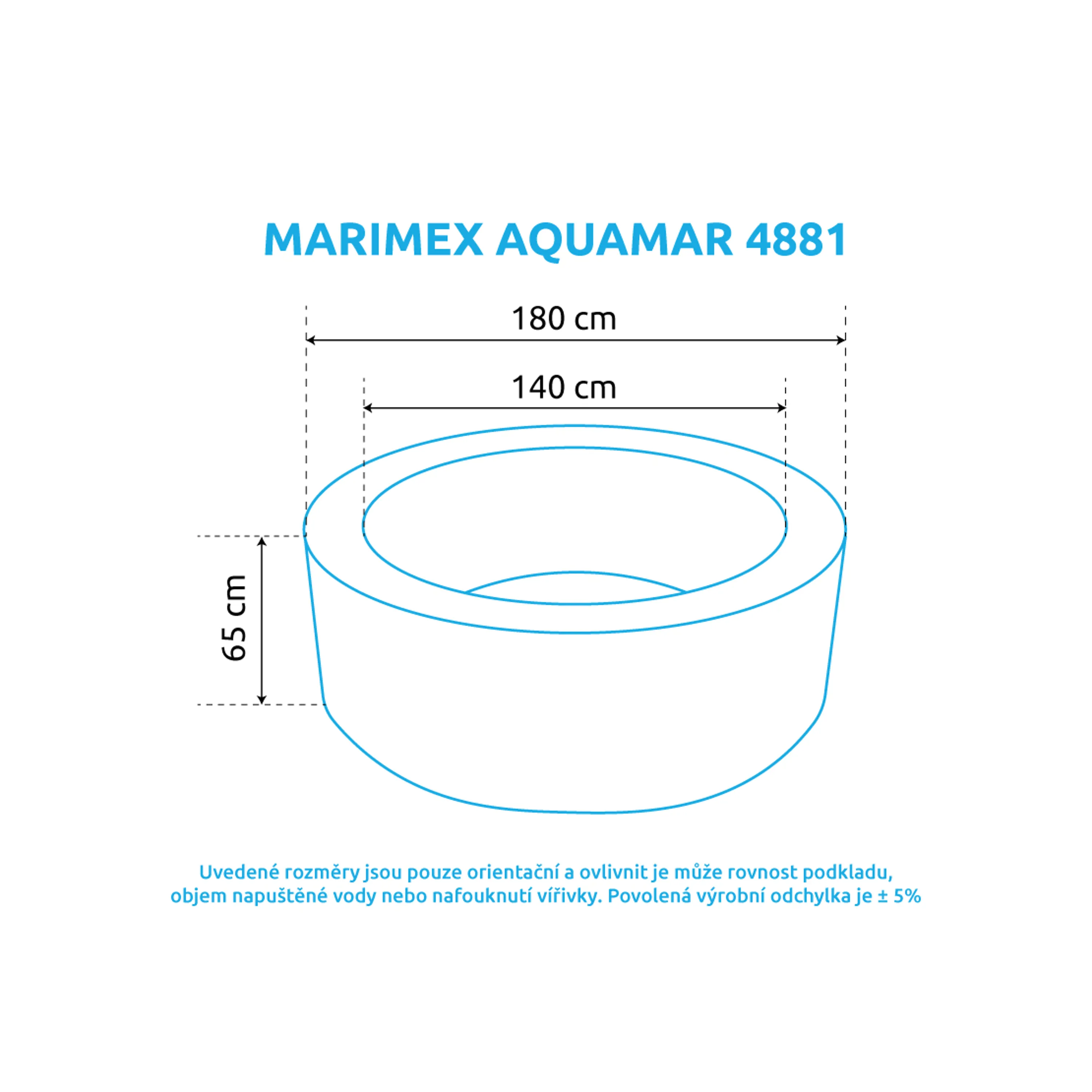 - Vnější průměr: 180 cm (po naplnění vodou, tolerance ± 5%)