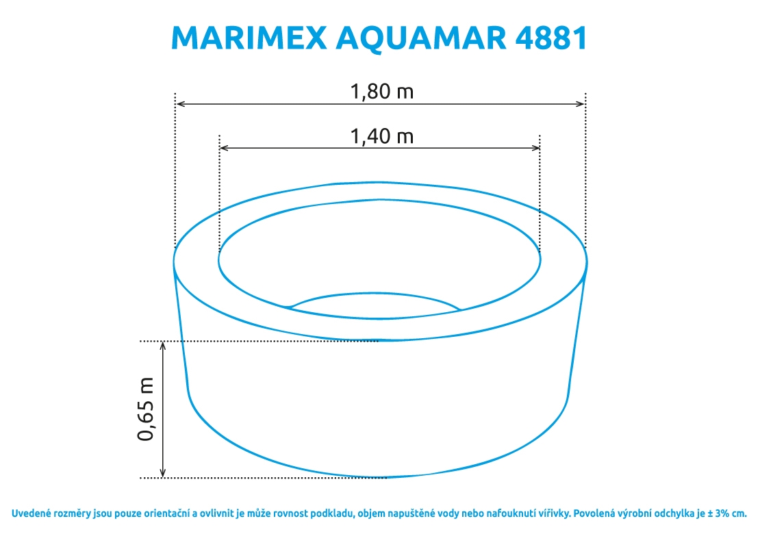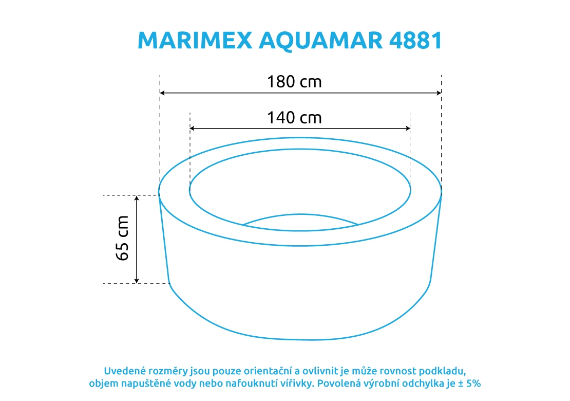 - Vnější průměr: 180 cm (po naplnění vodou, tolerance ± 5%)