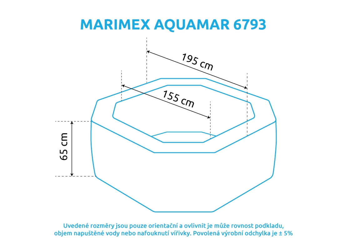 • Vnější průměr: 195 cm (po naplnění vodou, tolerance ± 5%)