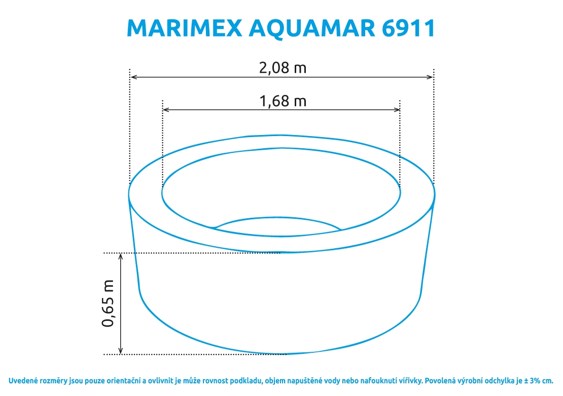 - Vnější průměr: 208 cm (po naplnění vodou, tolerance ± 5%)