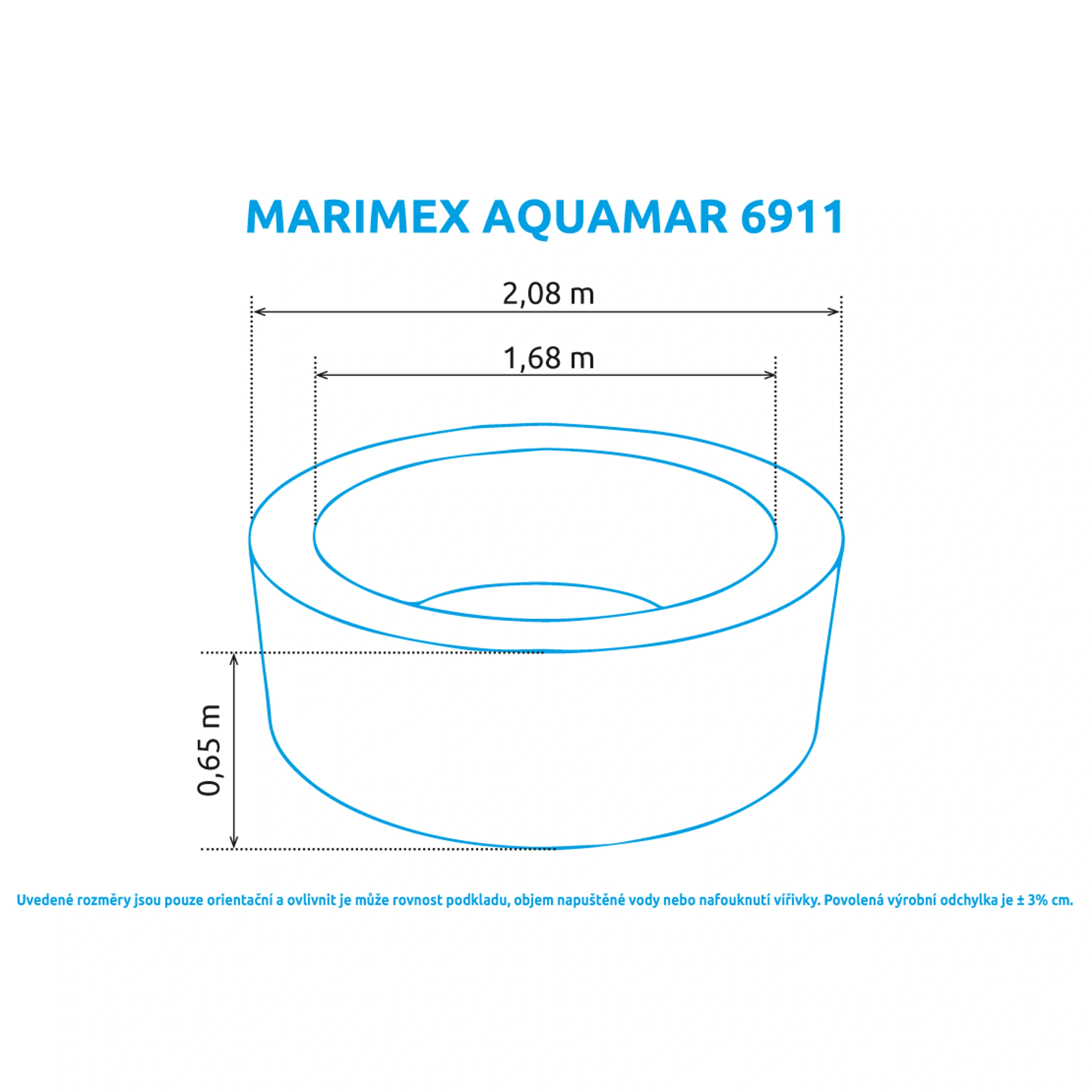 • Vnější průměr: 208 cm (po naplnění vodou, tolerance ± 5%)