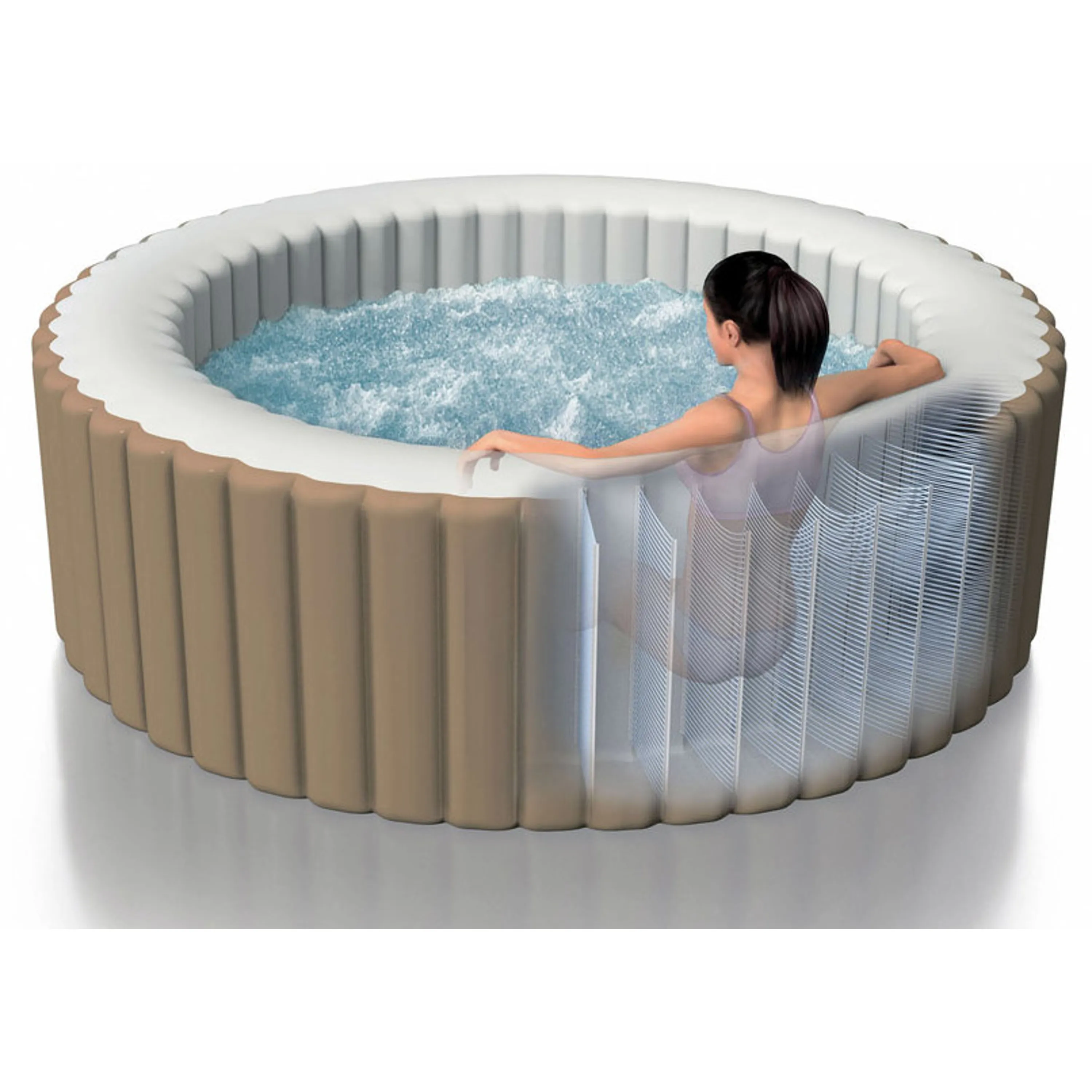 Díky samoinstalačnímu mechanismu je instalace vířivé vany rychlá a jednoduchá. PureSpa stačí zapojit do zásuvky a sama se během okamžiku nafoukne.