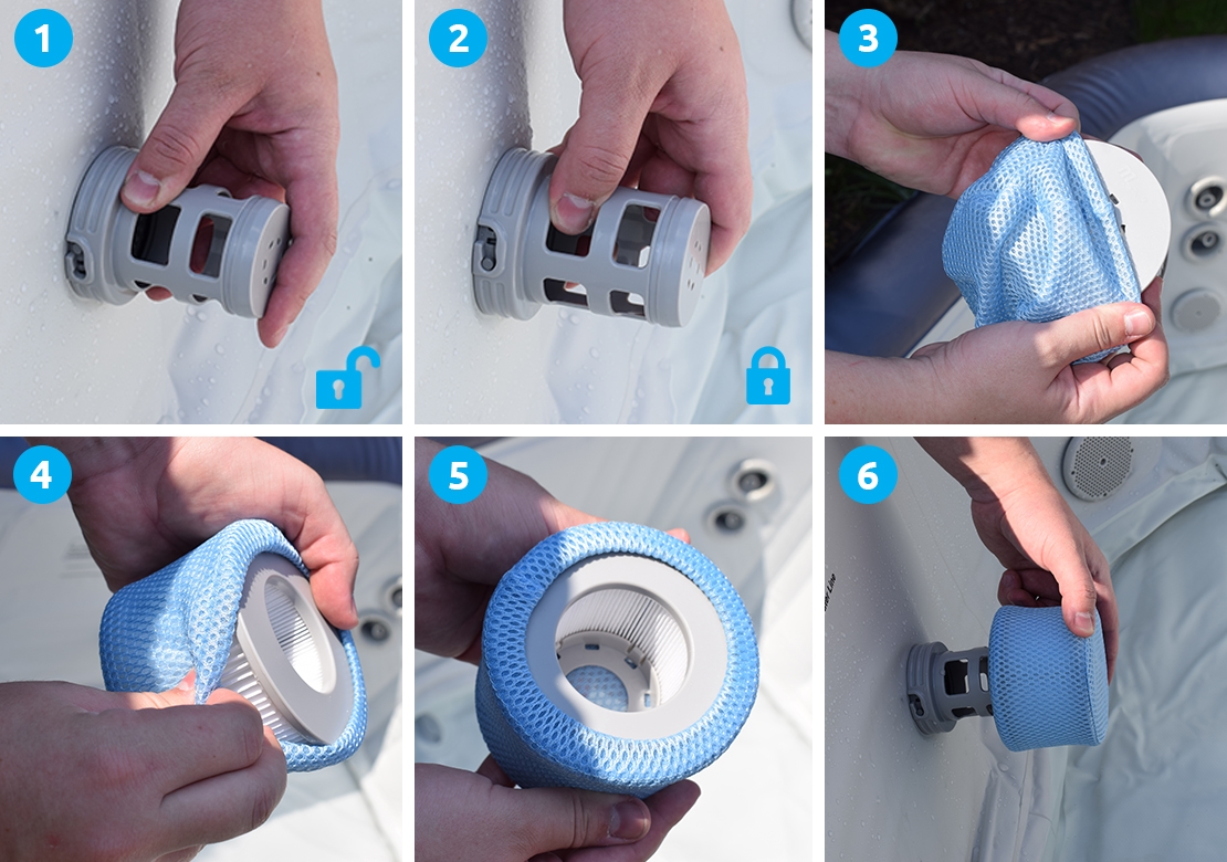 - 2x filtrační vložka (kartuše) s potahem. Pro fungování vířivky mohou být použity kartuše s potahem i bez potahu.