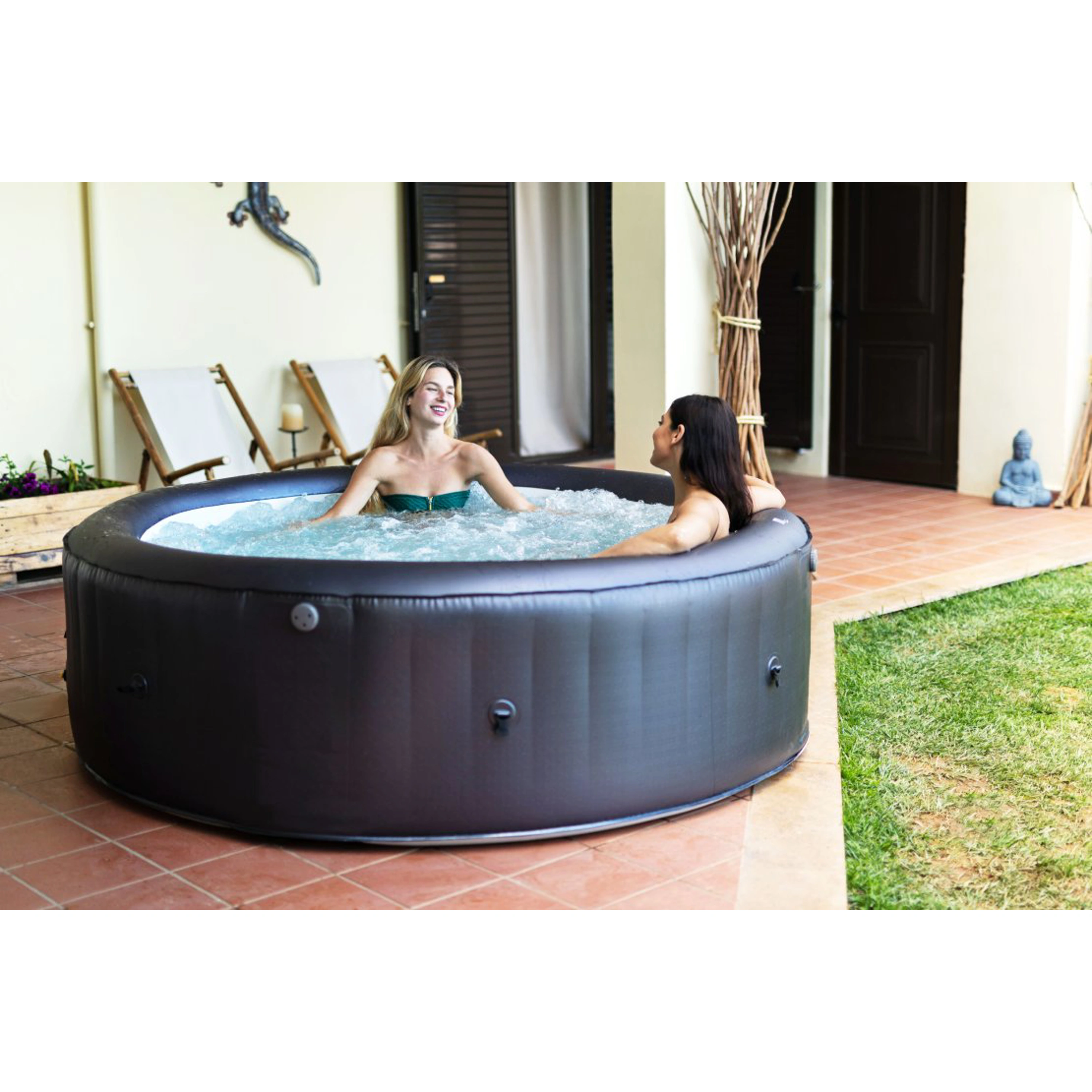 Nafukovací vířivku lze používat jak v interiéru, tak i v exteriéru. V létě ji můžete umístit na zahradu, v zimě do domácnosti.