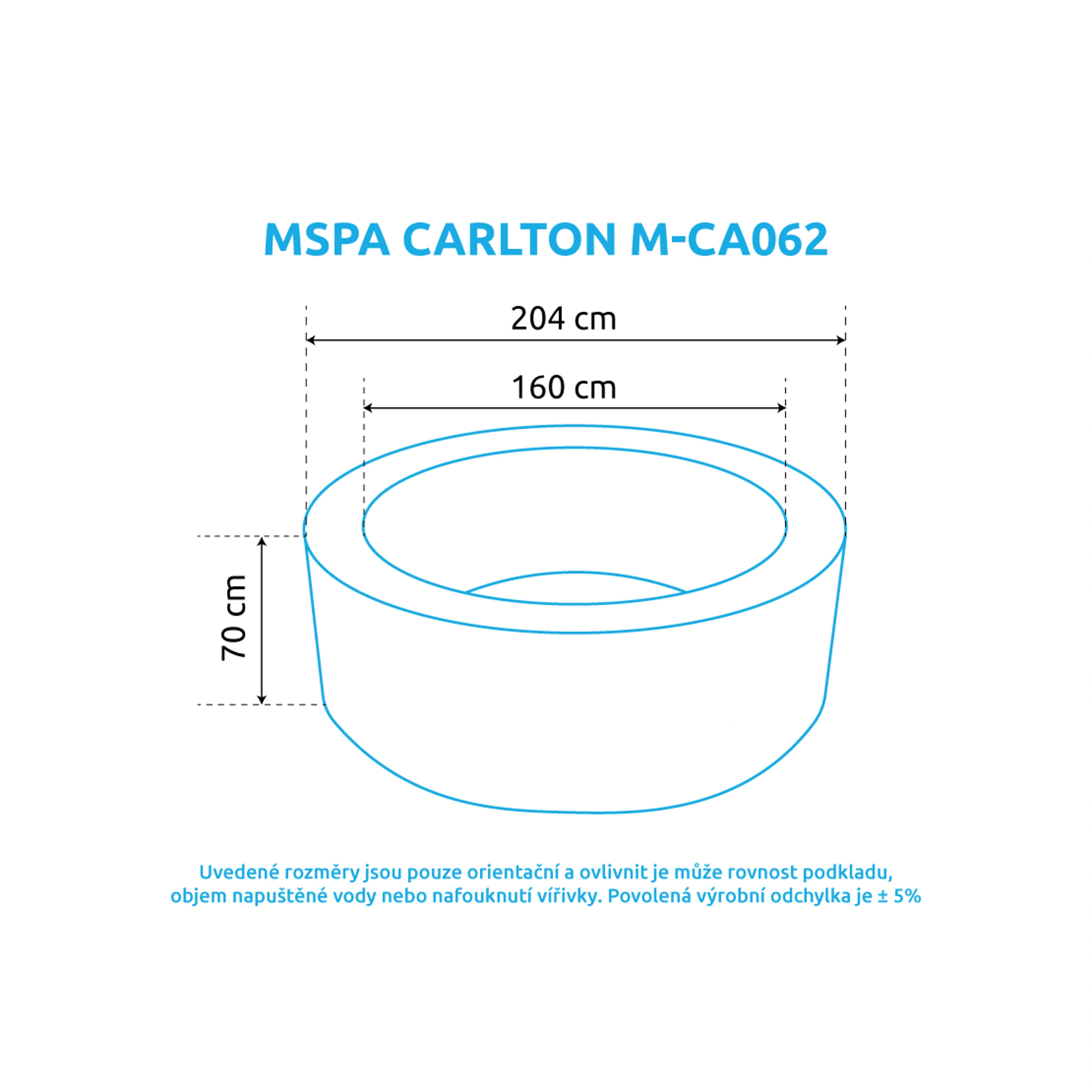 - Vnější průměr: 204 cm (po naplnění vodou, tolerance ± 5%)