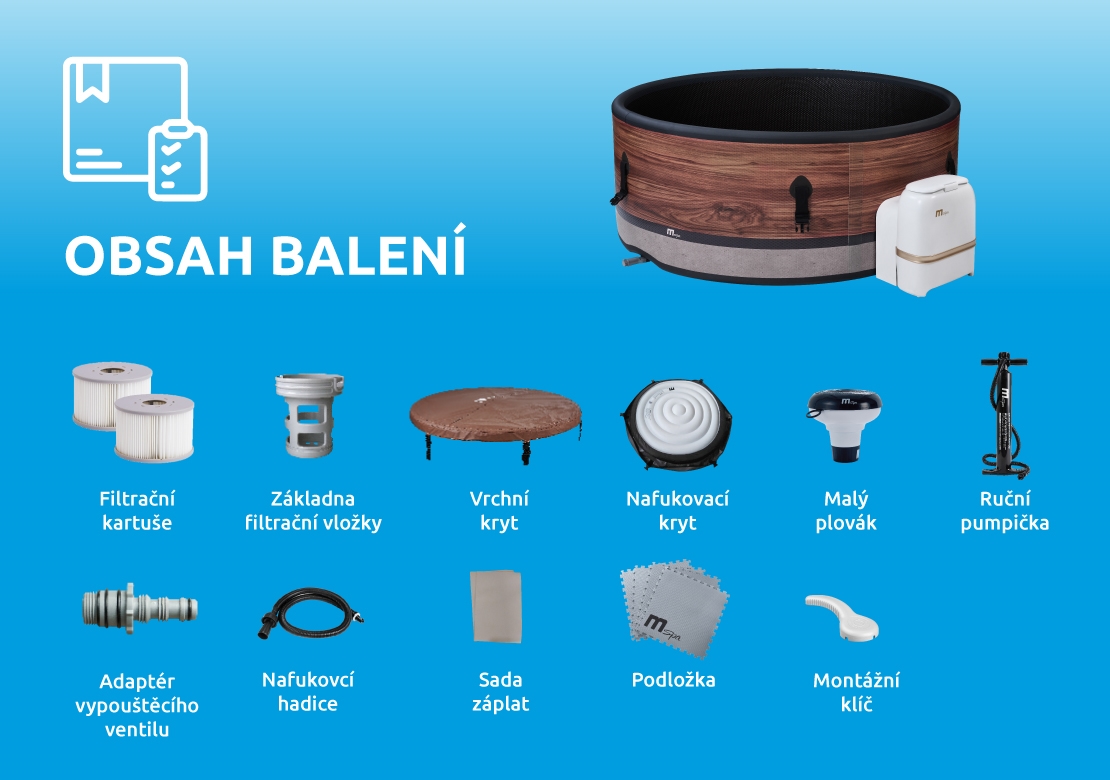 Tato vířivka má poškozený obal. Vířivka poškozená není a je 100% funkční, příslušenství v balení je kompletní.