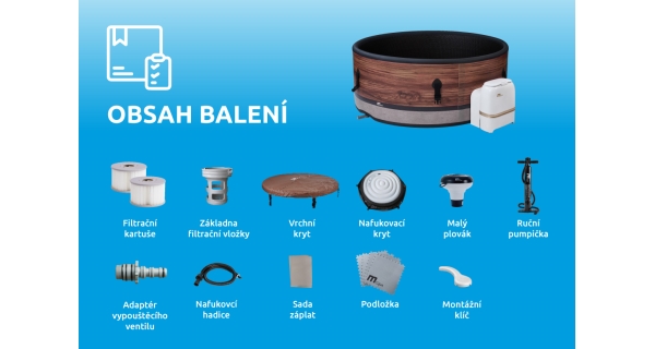 Stačí najít rovné podloží, sestavit vířivku a napustit vodu. Montáž vířivky zvládnou dva lidé do 60 minut.
