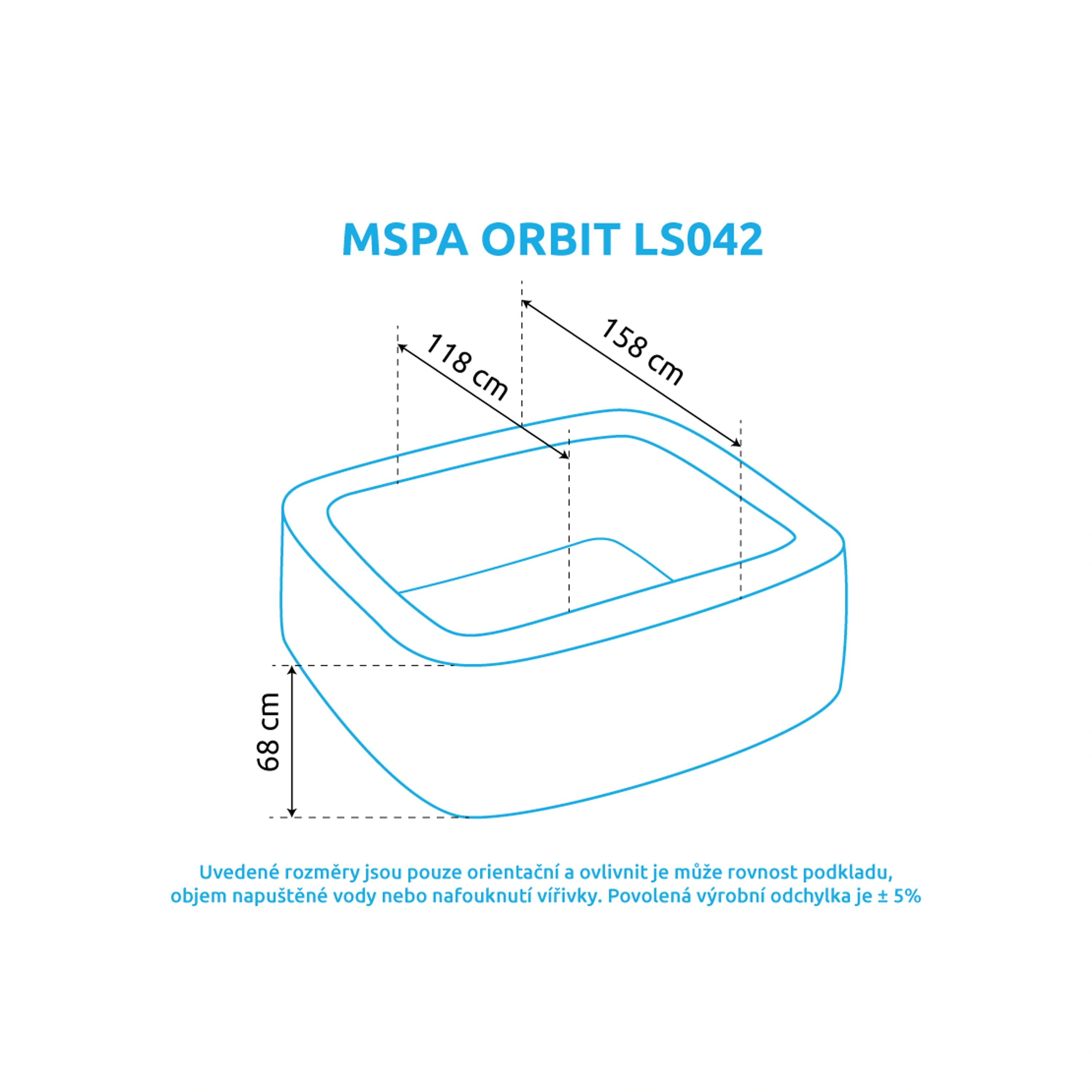 - Vnější rozměry: 158 x 158 cm (po naplnění vodou, tolerance ± 5%)