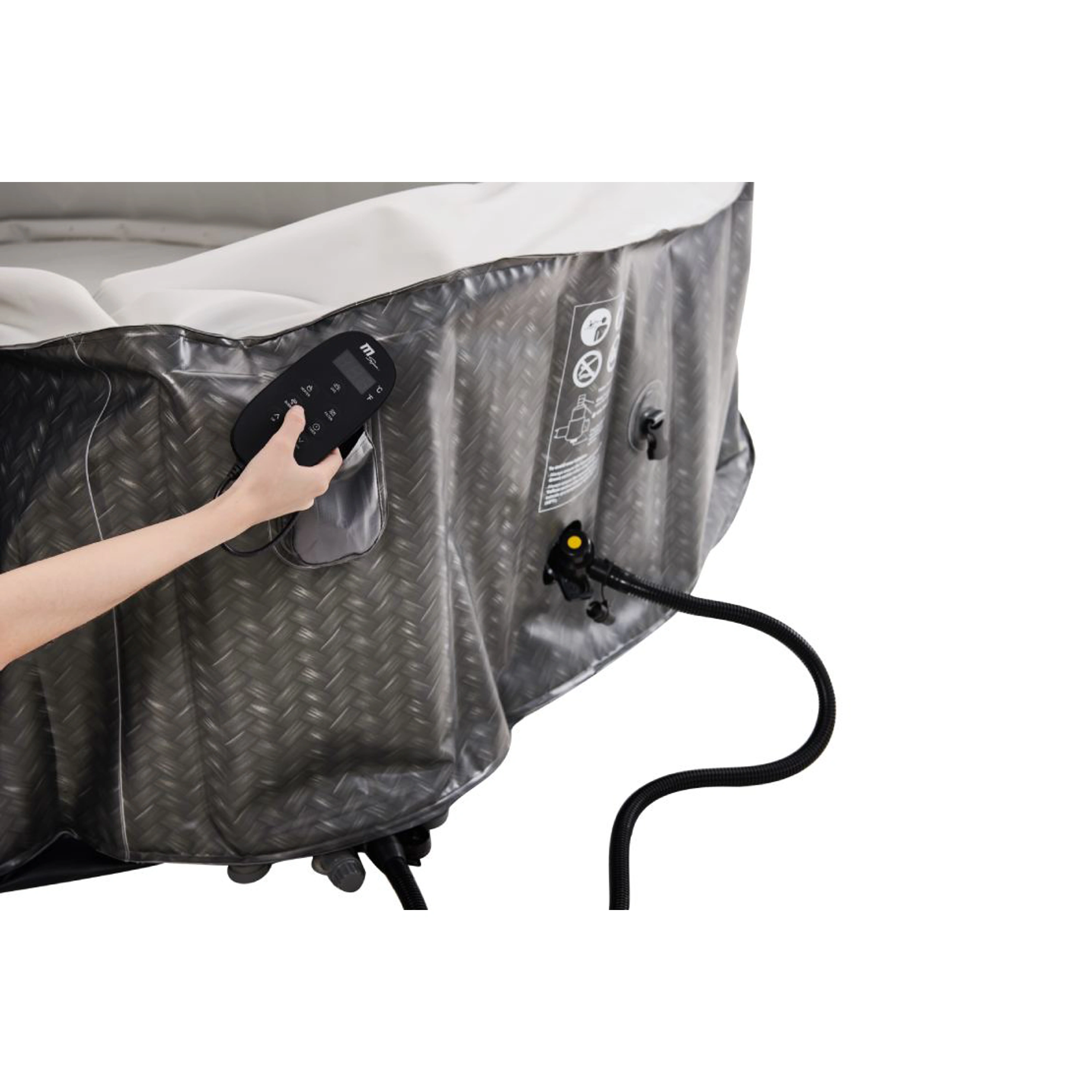 Stačí najít rovné podloží, nafouknout vířivku elektrickou pumpou a napustit vodu. Montáž vířivky zvládnete do deseti minut.