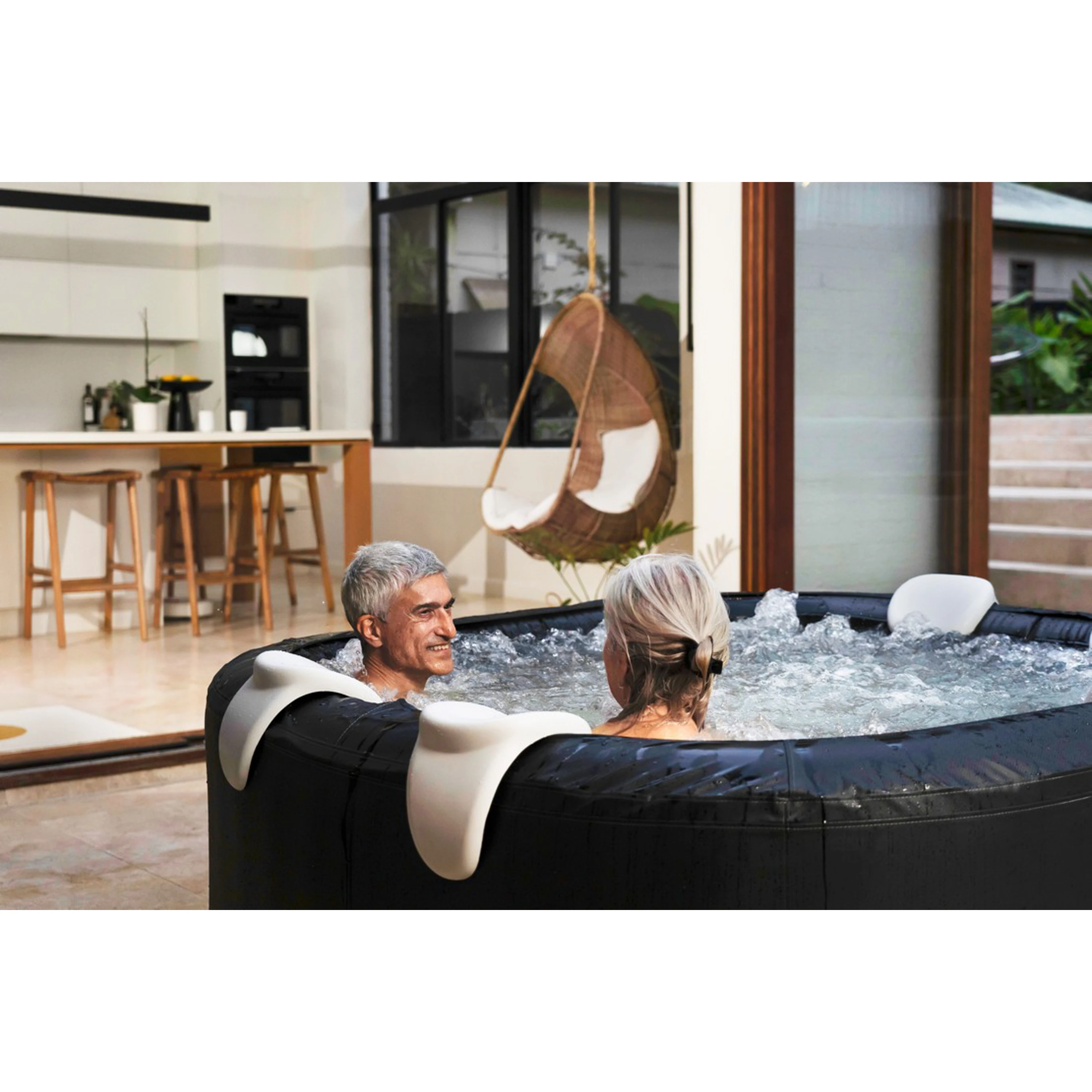 Kombinace klasických nafukovacích bazénů a luxusních vířivek. Stejně jako vestavěné vířivky disponuje výkonnými tryskami, ale pořizovací cena je nižší.