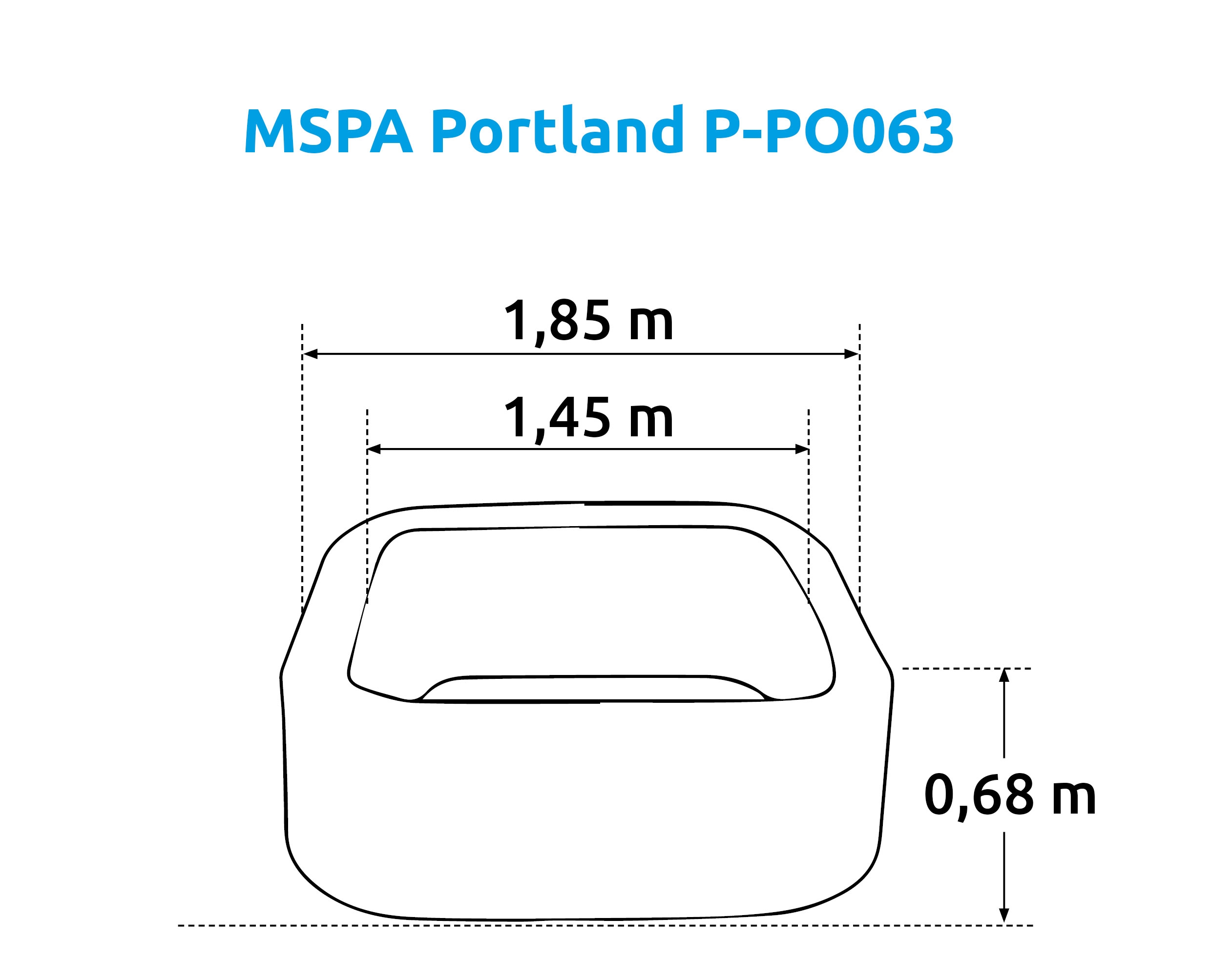 Vířivka Mspa Portland poskytuje dokonalou relaxaci ihned po stisknutí jediného tlačítka. Prostorově je řešená až pro šest osob. Intuitivní ovládací panel aktivuje 132 vysoce výkonných bublinkových trysek, které masáží povzbudí každý sval. Integrovaný topný systém umožňuje upravit teplotu vody dle momentální nálady. Vířivka Mspa Portland vyžaduje pouze jednoduchou a rychlou údržbu. Vana je z prémiové PVC tkaniny, kryt vířivky z prémiové odolné PVC kůže, která je voděodolná a s ochranou proti UV záření. Uvolňující perličkovou terapii s nezávislým ohřevem ocení rodina i přátelé.
