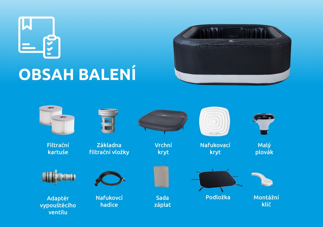 Upozornění: produkt má poškozený obal, vířivka je kompletní a nepoškozená.