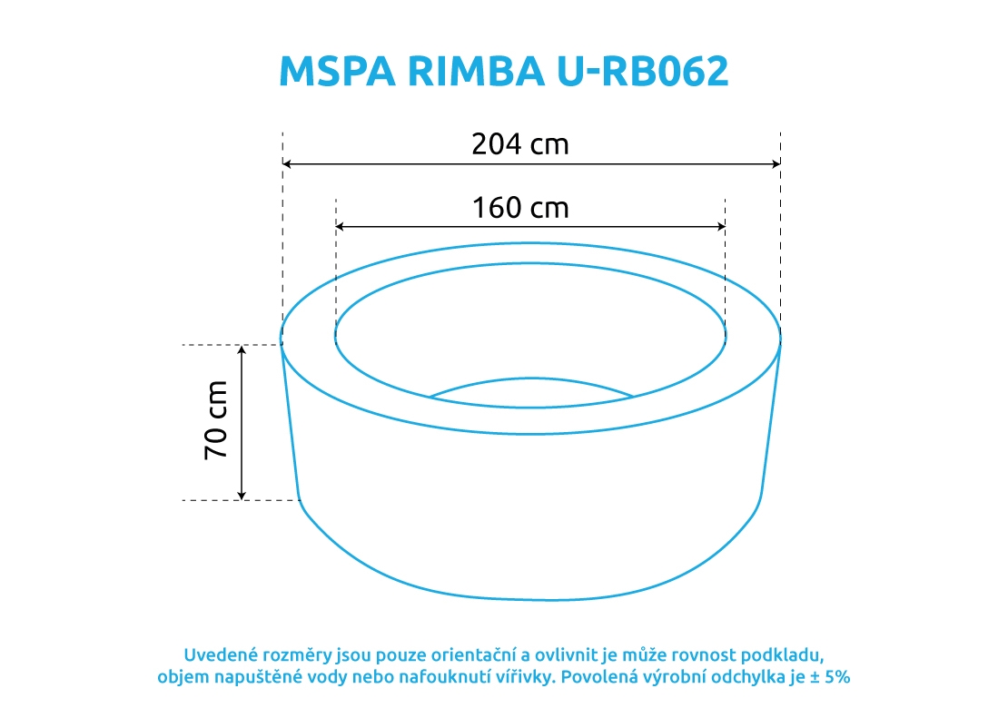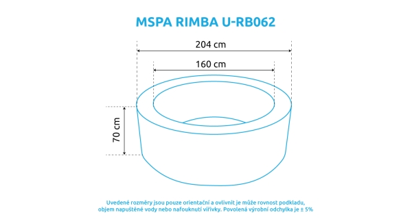 - Vnější průměr: 204 cm (po naplnění vodou, tolerance ± 5%)