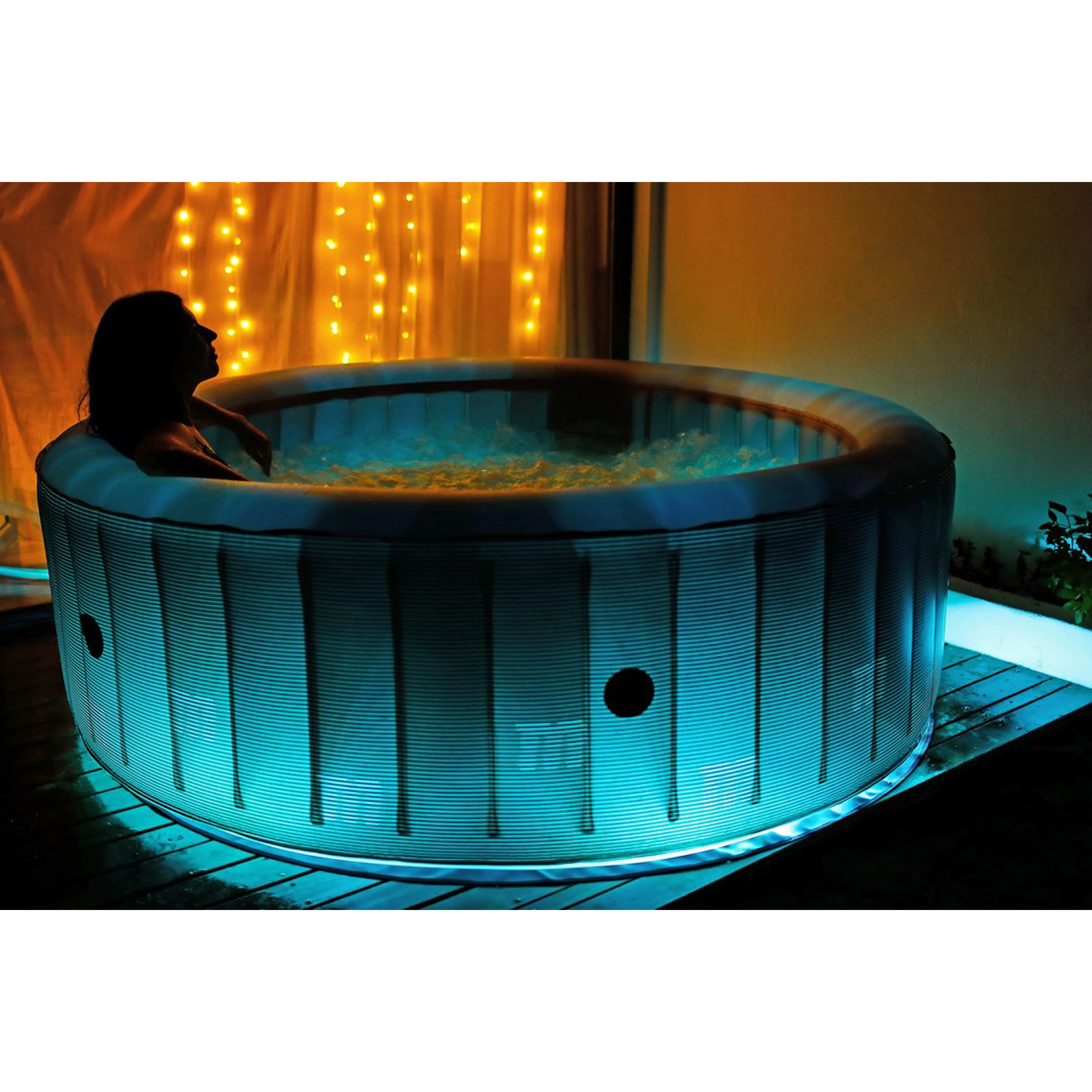 Nafukovací vířivku lze používat jak v interiéru, tak i v exteriéru. V létě ji můžete umístit na zahradu, v zimě do domácnosti.