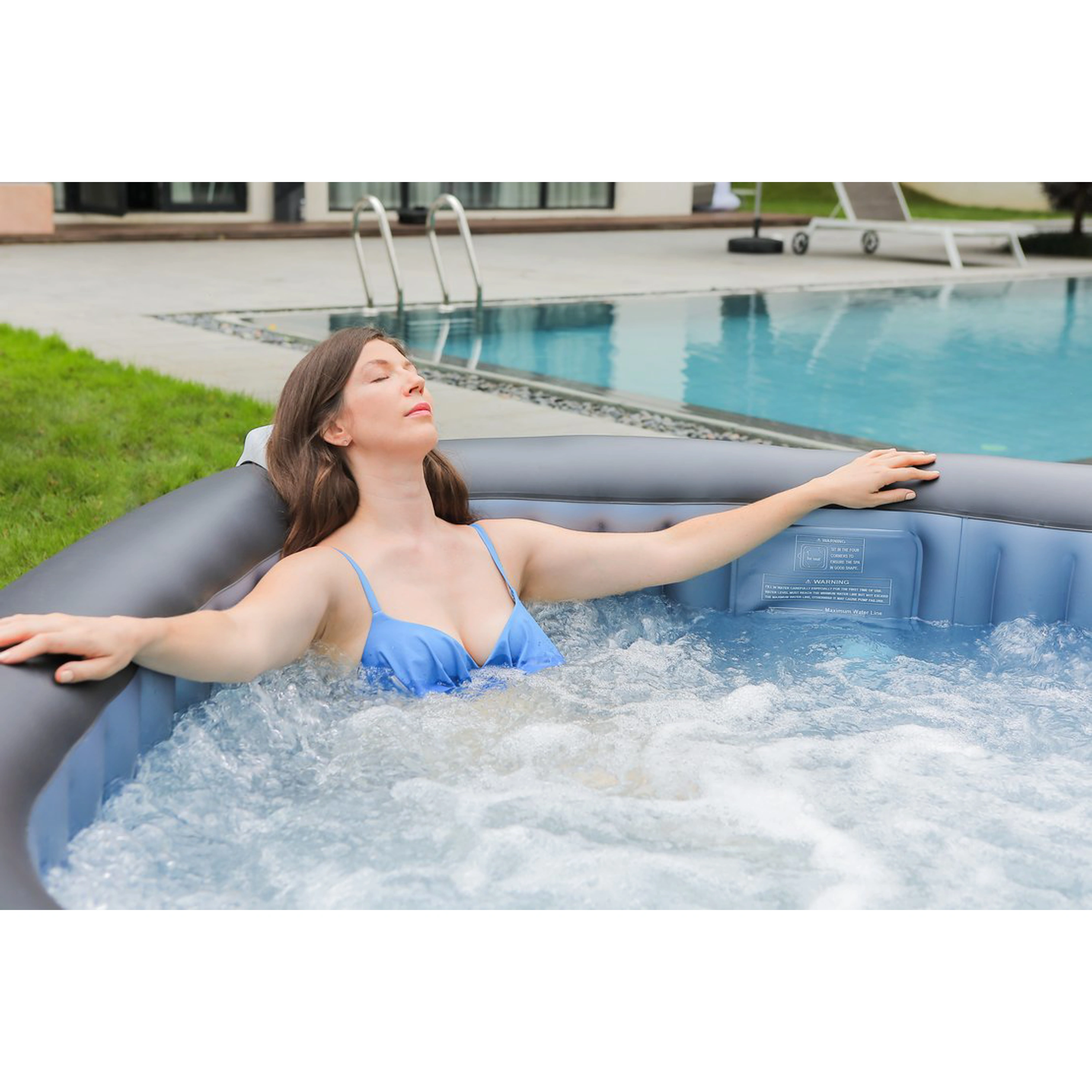 Nafukovací vířivku lze používat jak v interiéru, tak i v exteriéru. V létě ji můžete umístit na zahradu, v zimě do domácnosti.