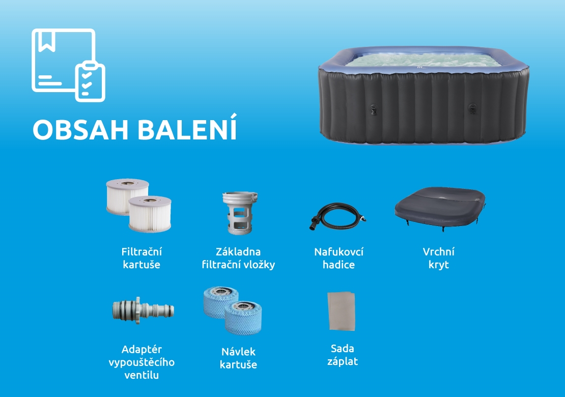 Stačí najít rovné podloží, nafouknout vířivku elektrickou pumpou a napustit vodu. Montáž vířivky zvládnete do deseti minut.